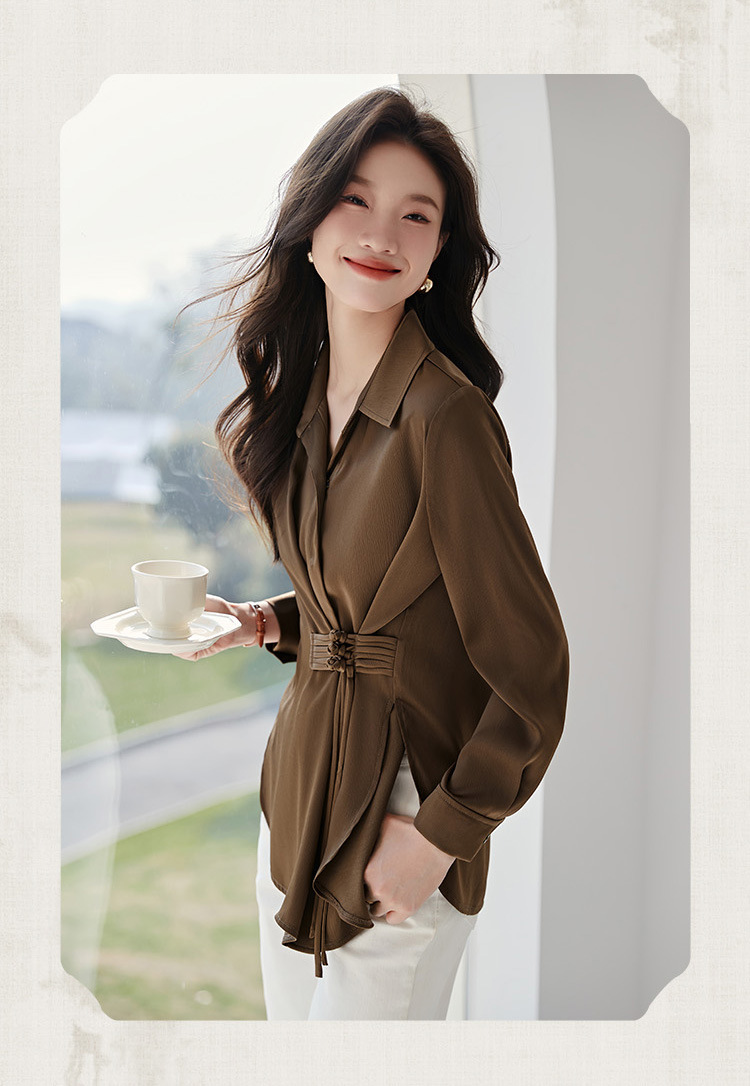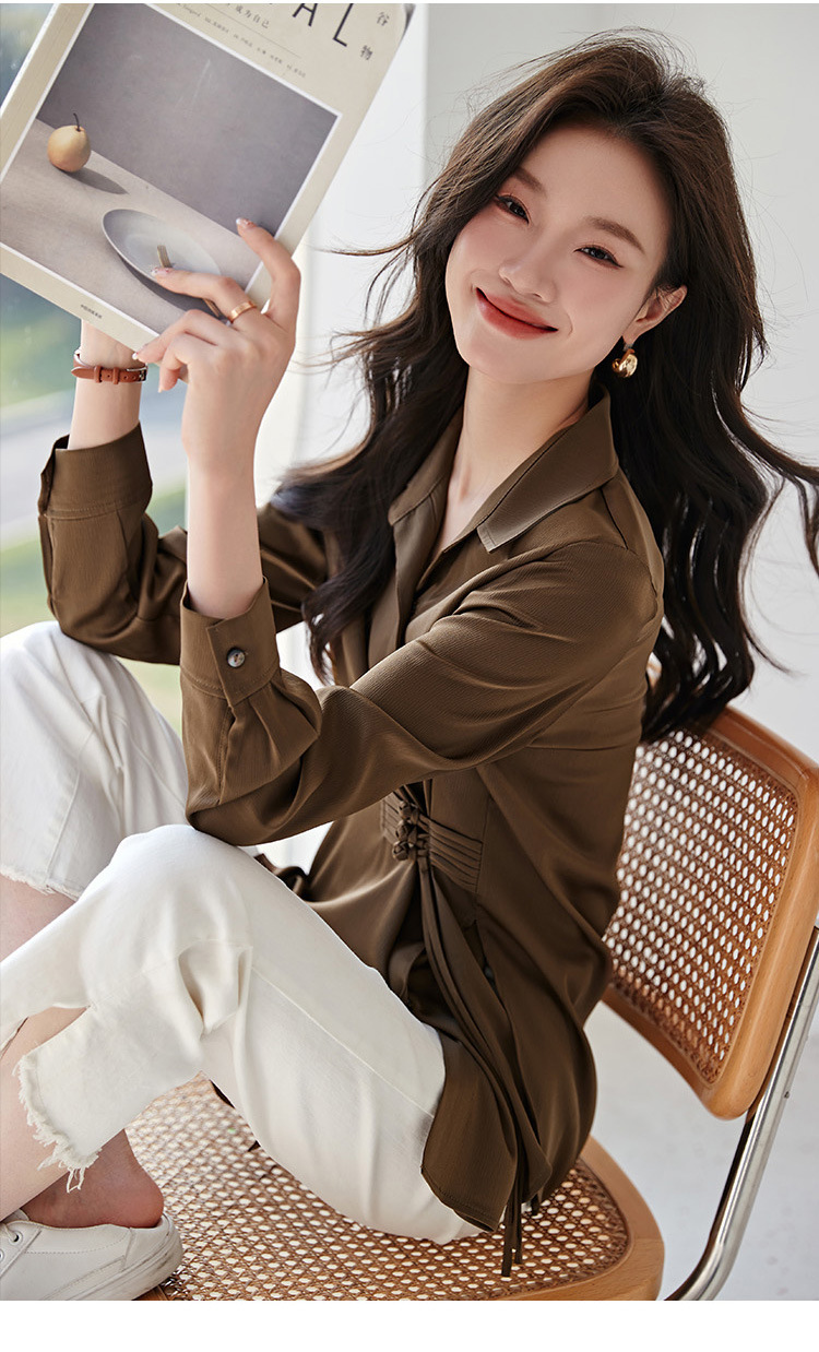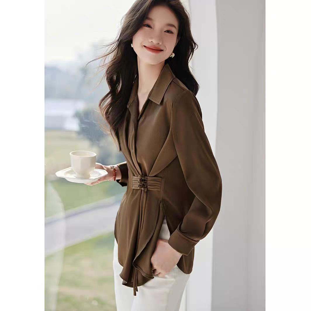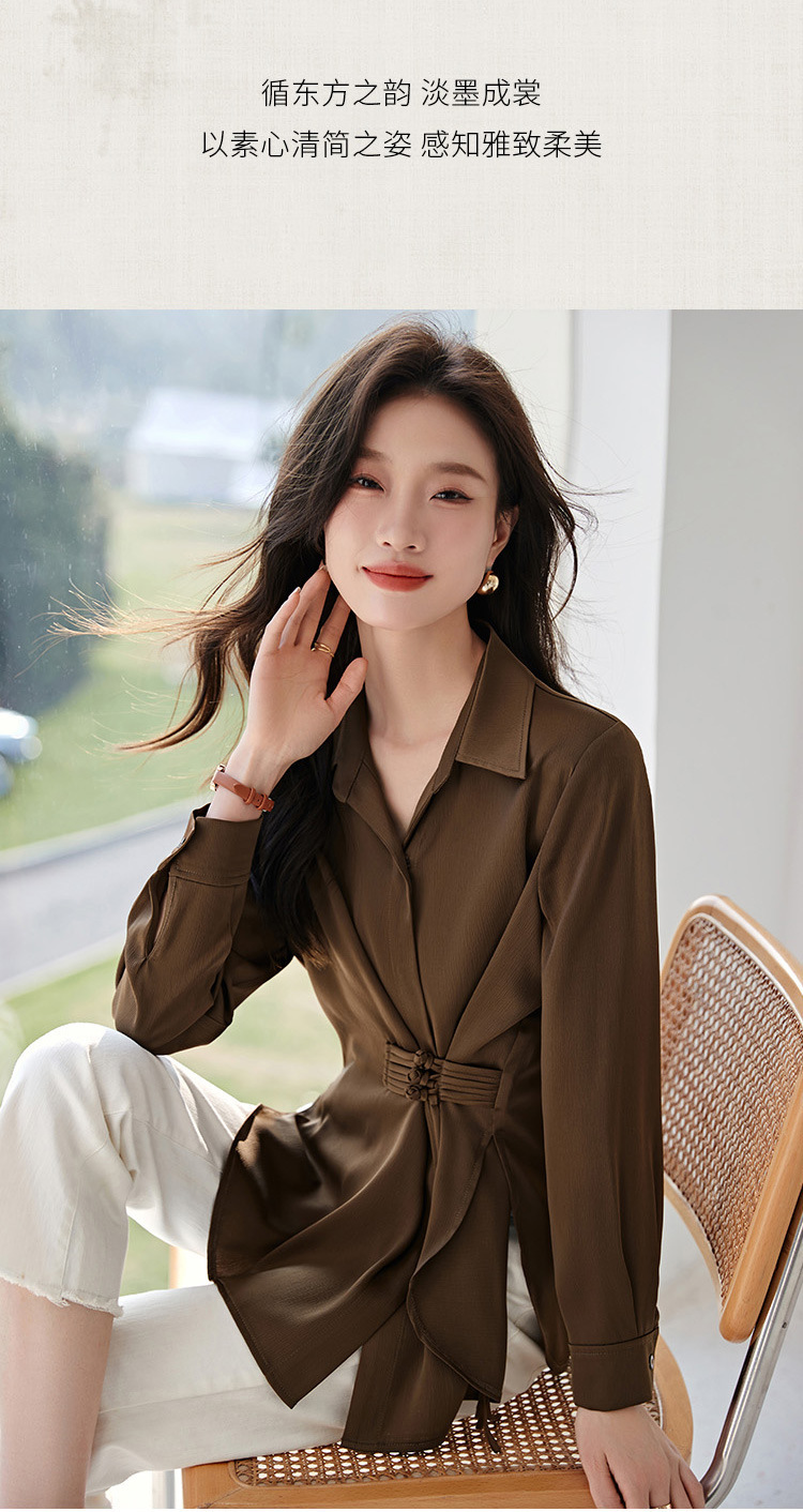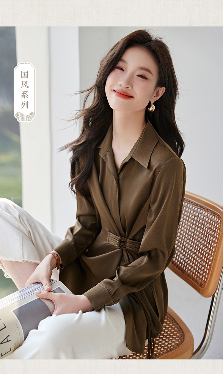 새로운 중국 스타일의 국가 스타일 우아한 옷깃 셔츠 봄 새로운 중국 스타일. 수제 버클 통근 셔츠스토어 가기