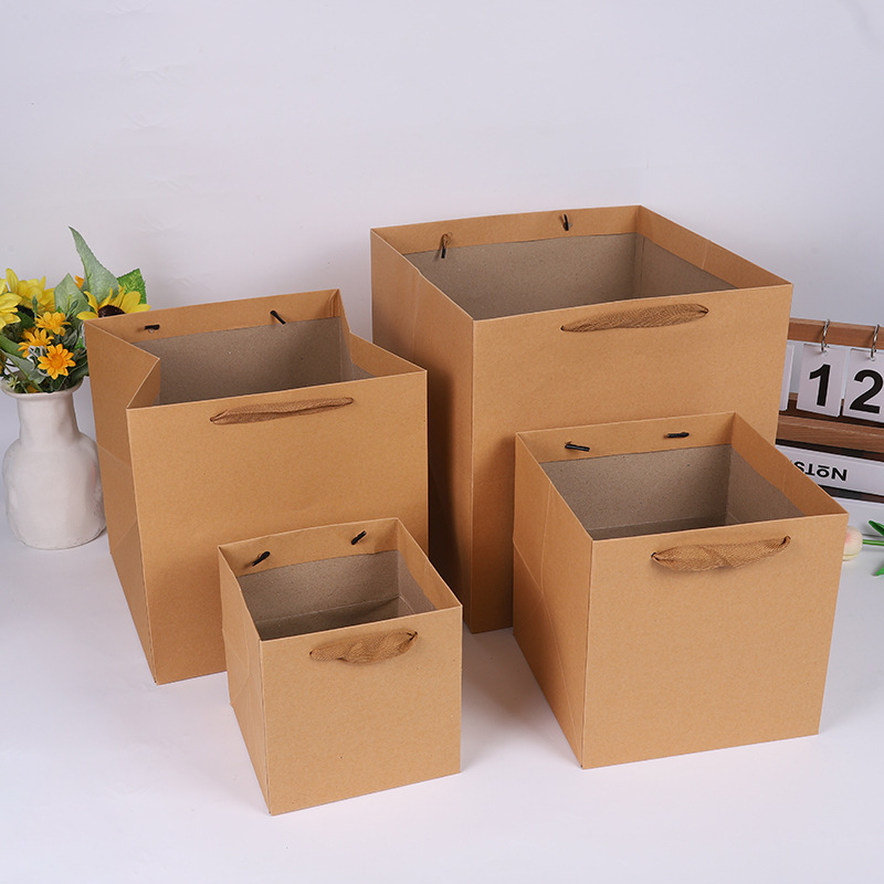 정사각형 선물 가방, 선물 가방, 크라프트 종이 가방, 생일 케이크 포장 가방, 대형 꽃다발 포장 선물 가방
