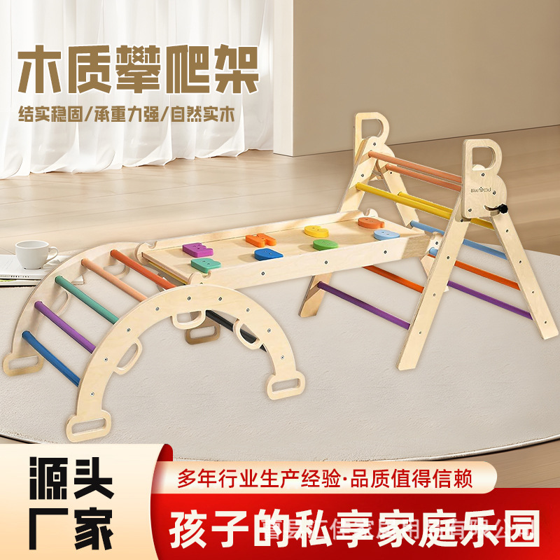 단단한 나무 어린이 실내 조기 교육 유치원 삼각형 사다리 슬라이드 감각 훈련 장비 A 선 접이식 등반 프레임