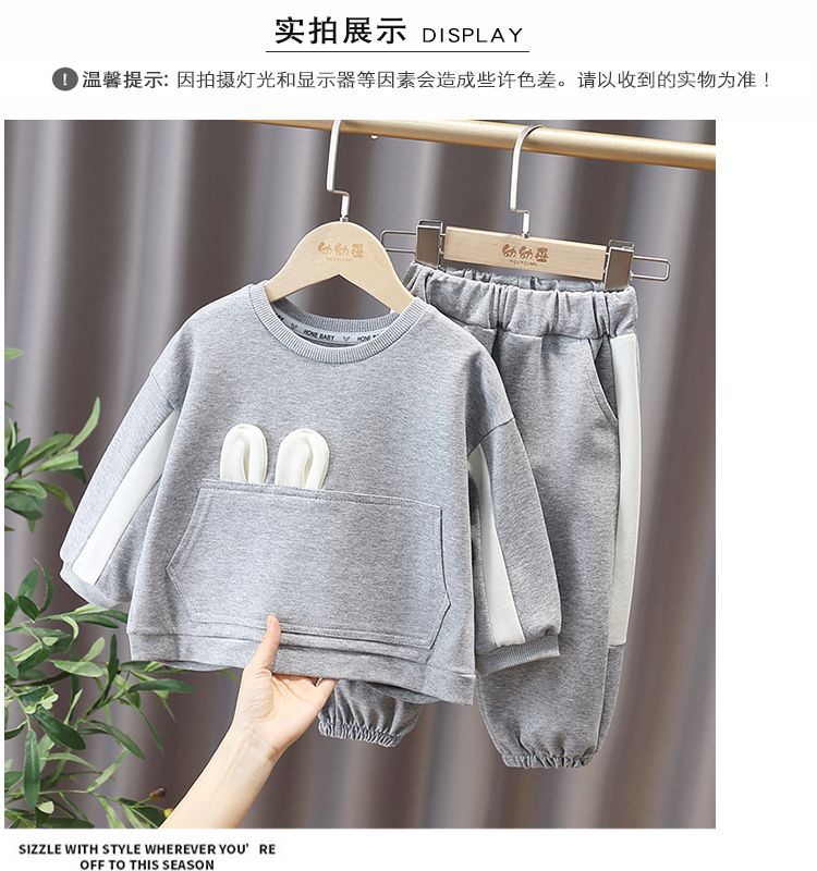 여아 가을 의류 세트 어린이 2024 새로운 봄, 가을 유행 귀여운 느슨한 아기 소녀 인터넷 연예인 투피스 세트스토어 가기