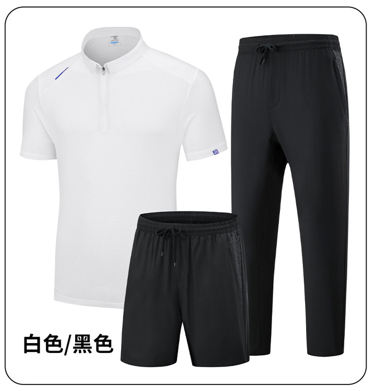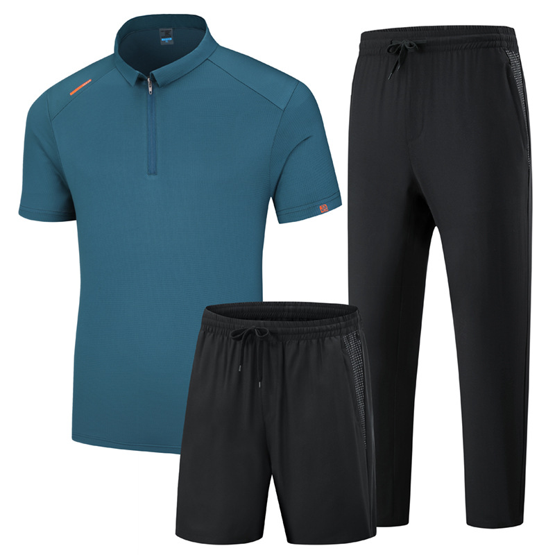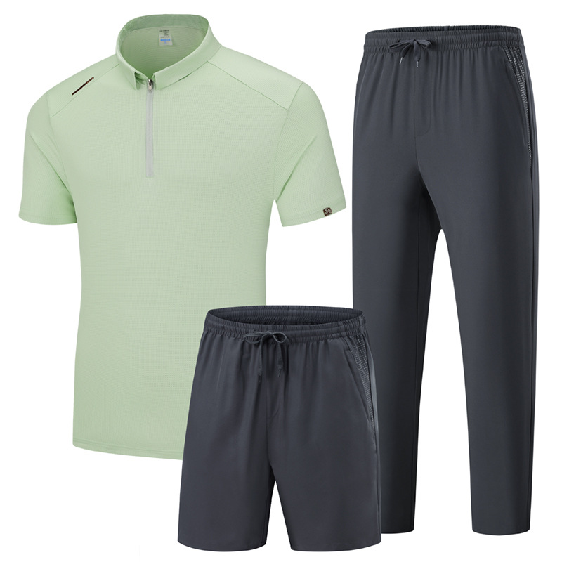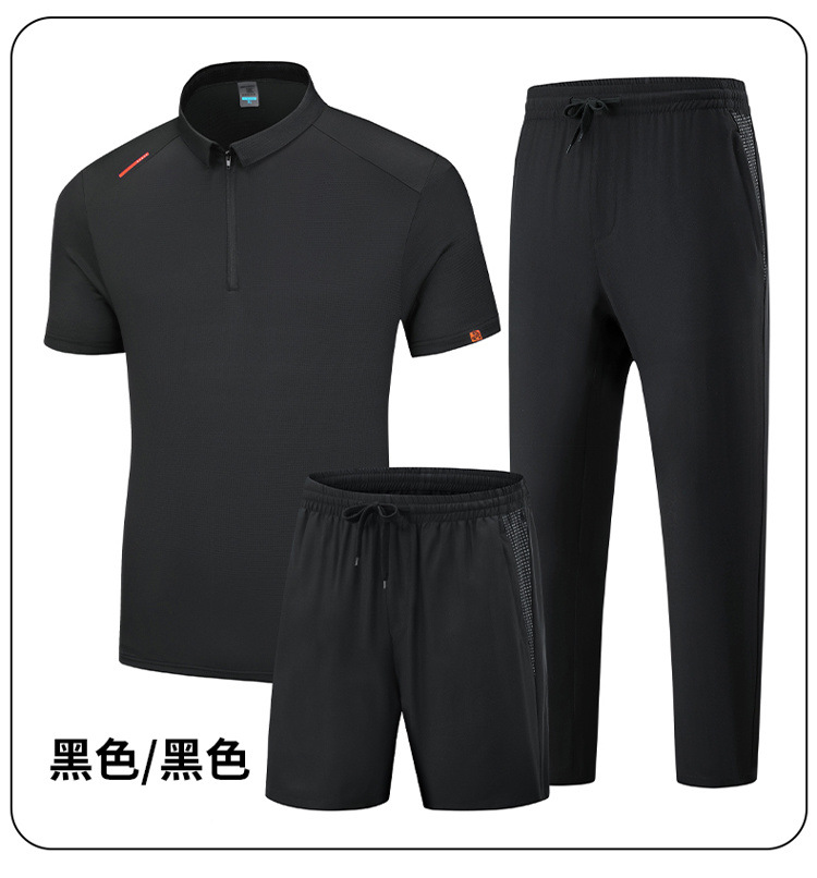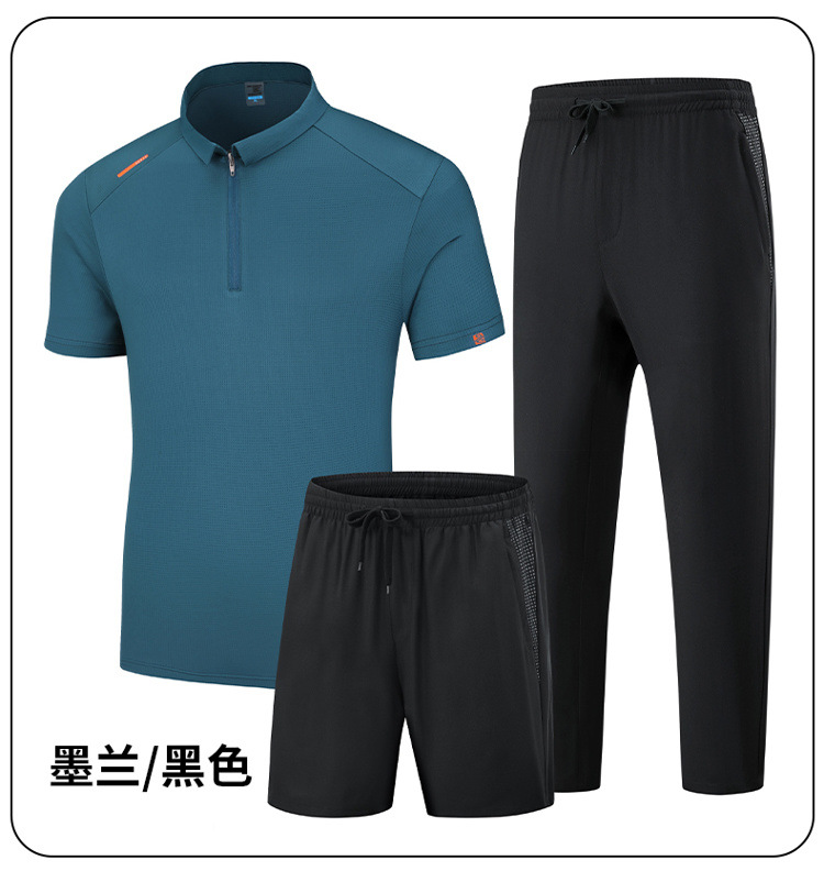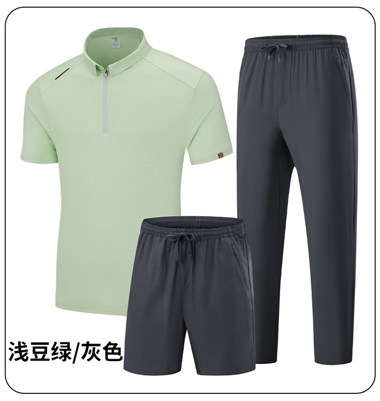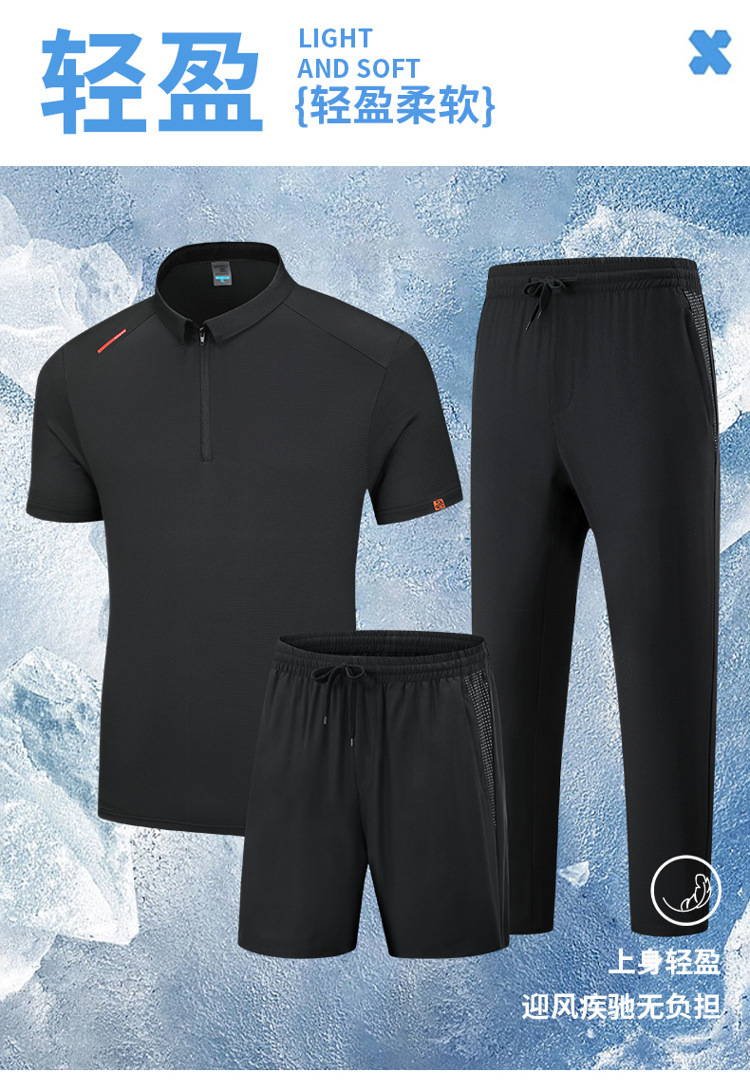 국경 간 여름 남성 스포츠 및 레저 3 피스 반팔 폴로 셔츠 바지 풀 세트 빠른 건조 플러스 사이즈 아이스 실크 세트스토어 가기
