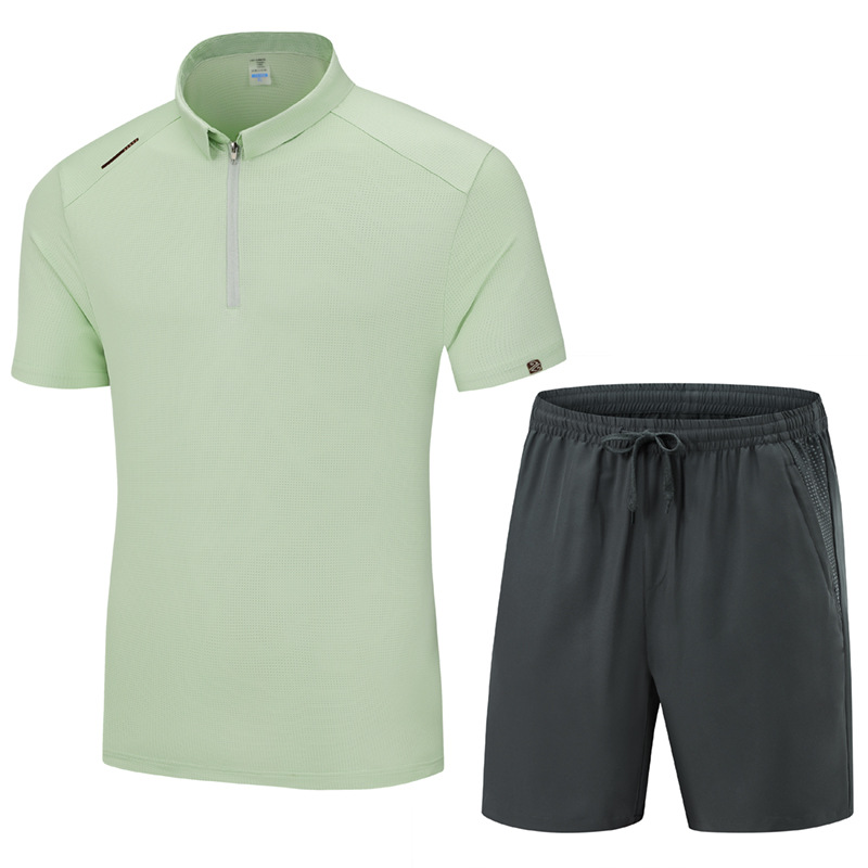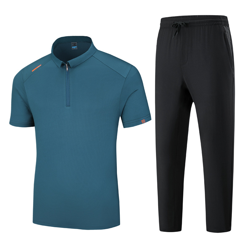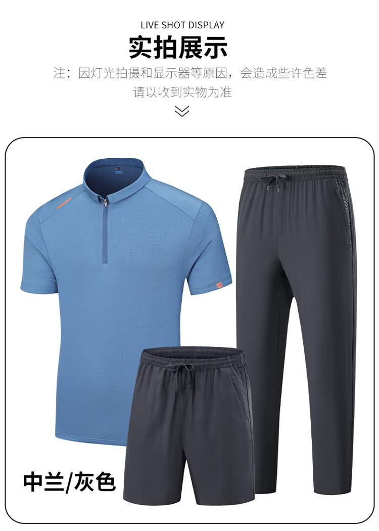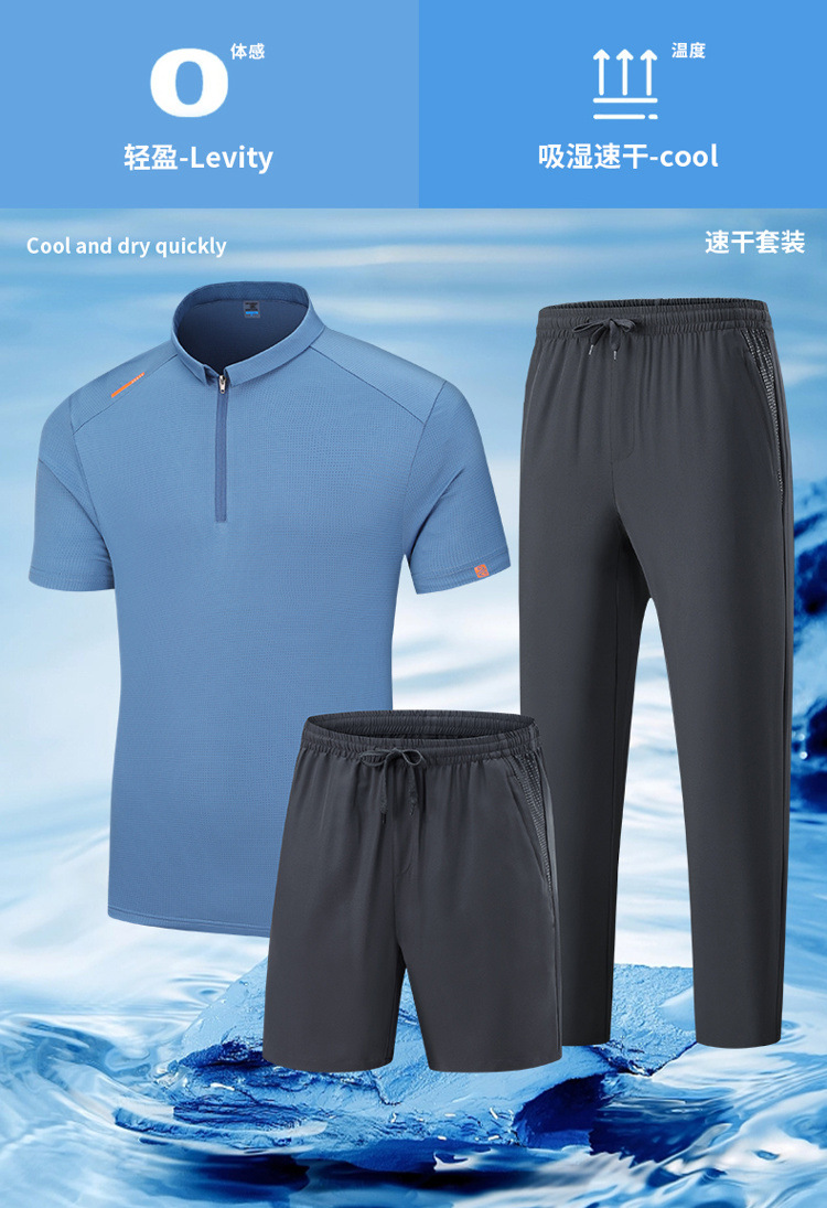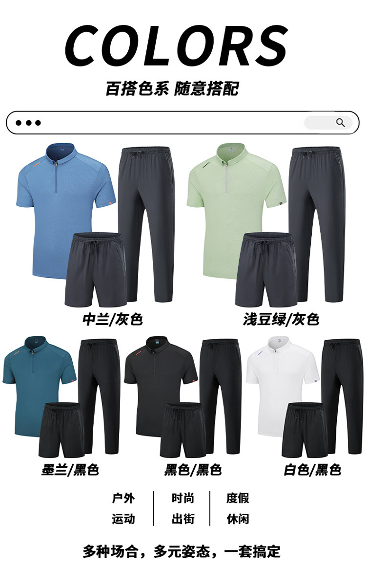 국경 간 여름 남성 스포츠 및 레저 3 피스 반팔 폴로 셔츠 바지 풀 세트 빠른 건조 플러스 사이즈 아이스 실크 세트스토어 가기