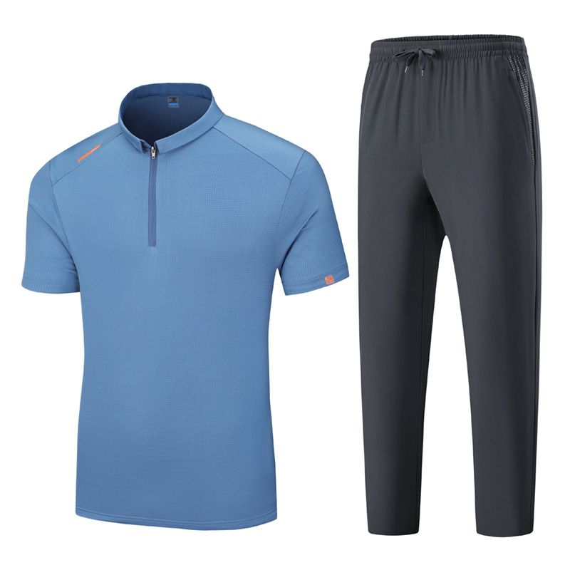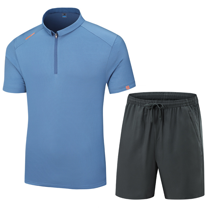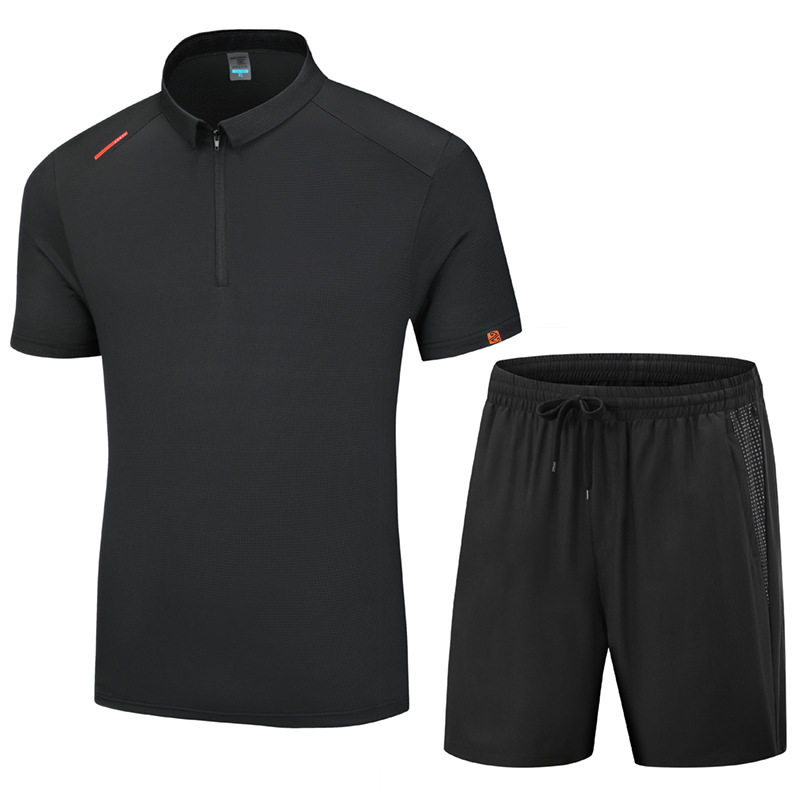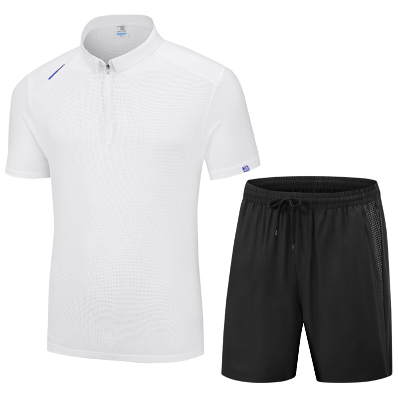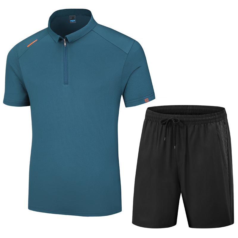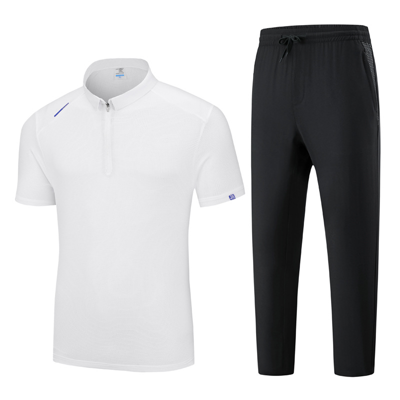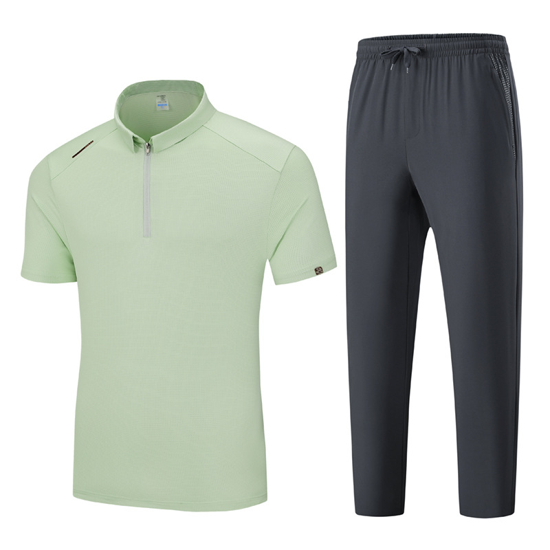 국경 간 여름 남성 스포츠 및 레저 3 피스 반팔 폴로 셔츠 바지 풀 세트 빠른 건조 플러스 사이즈 아이스 실크 세트스토어 가기