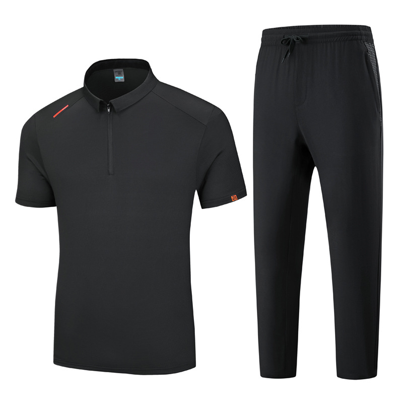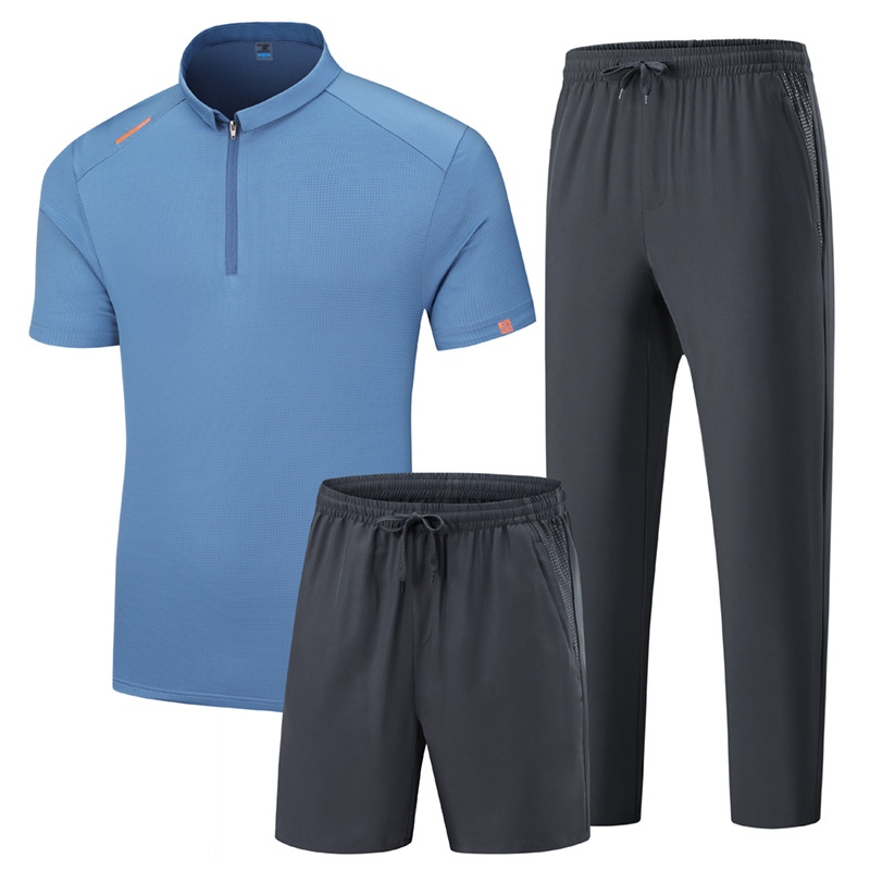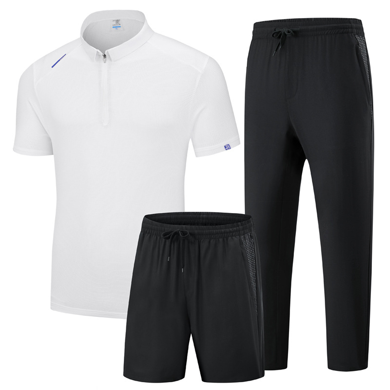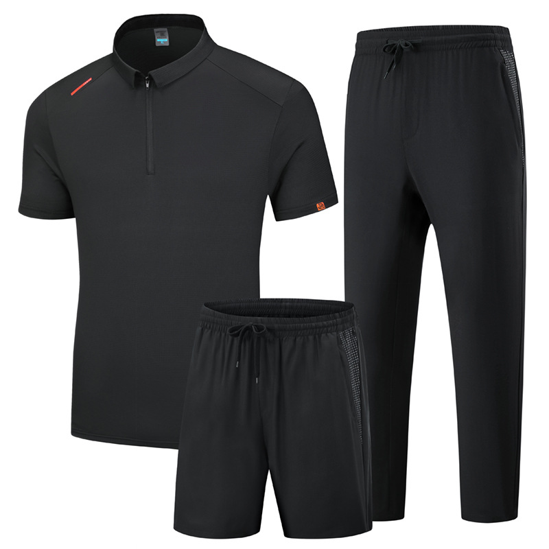 국경 간 여름 남성 스포츠 및 레저 3 피스 반팔 폴로 셔츠 바지 풀 세트 빠른 건조 플러스 사이즈 아이스 실크 세트