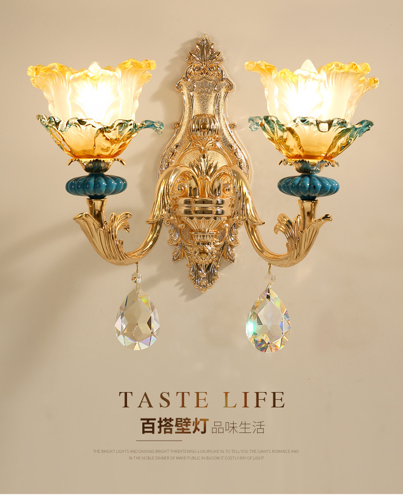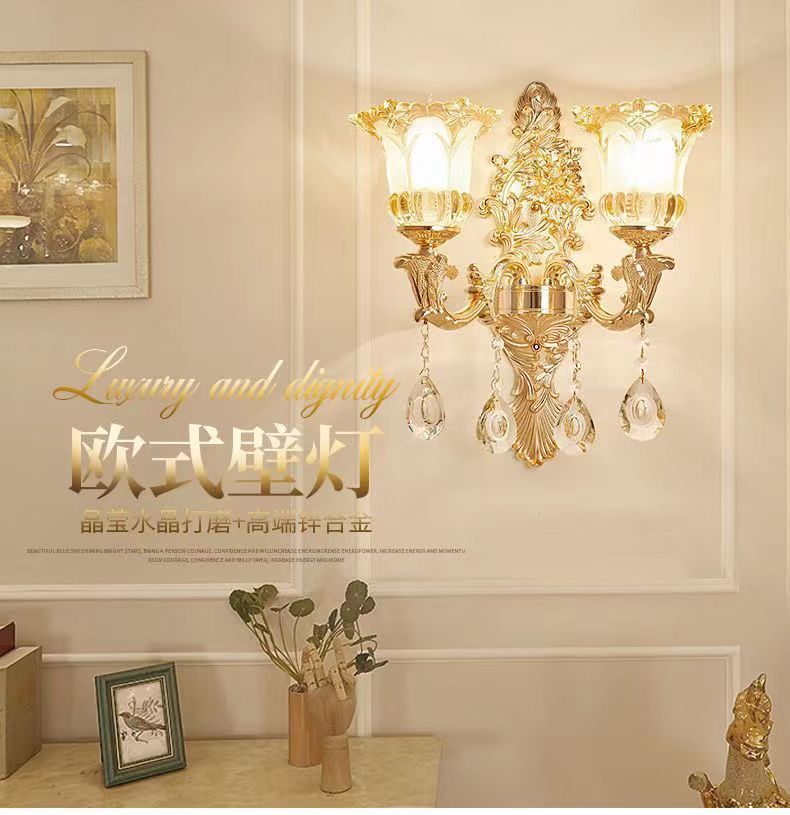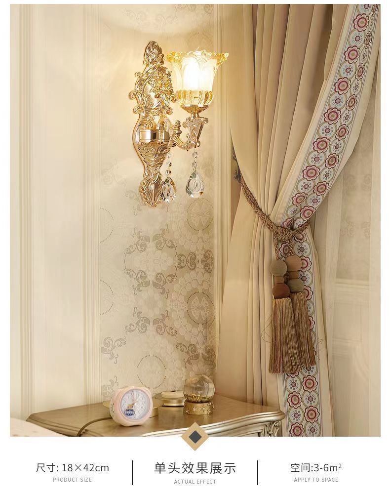 유럽 ​​스타일의 벽 램프 LED 크리스탈 벽 램프 거실 배경 벽 통로 복도 계단 램프 침실 머리맡 벽 벽 램프