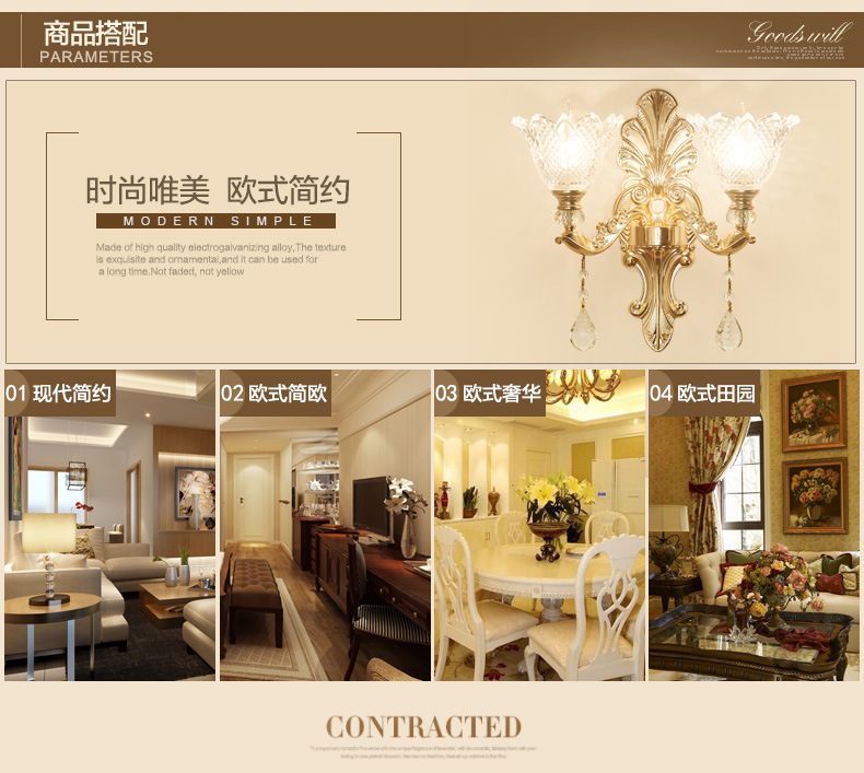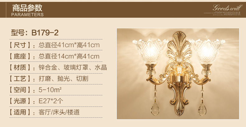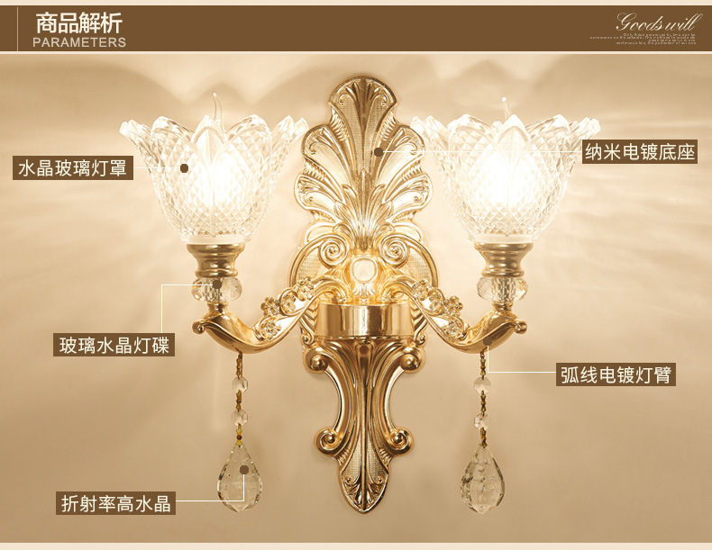 유럽 ​​스타일의 벽 램프 LED 크리스탈 벽 램프 거실 배경 벽 통로 복도 계단 램프 침실 머리맡 벽 벽 램프스토어 가기