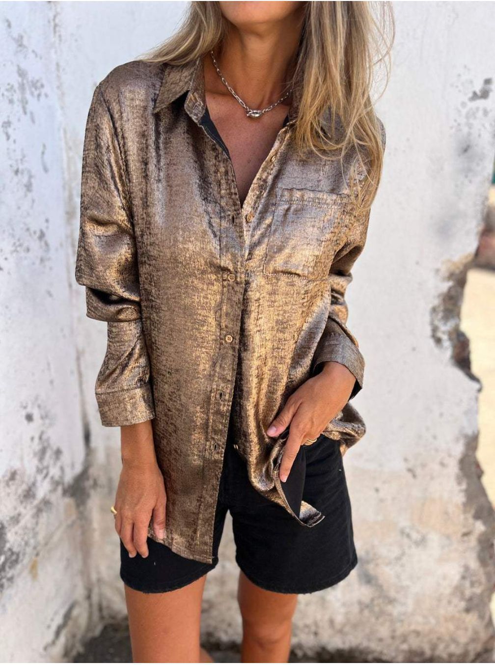2024 유럽과 미국의 국경 간 봄 새로운 여성 의류 독립 역 AliExpress 캐주얼 스웨이드 패션 옷깃 셔츠스토어 가기