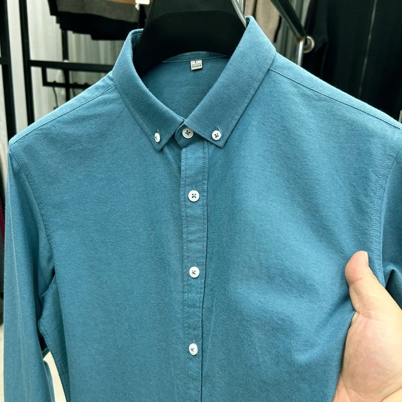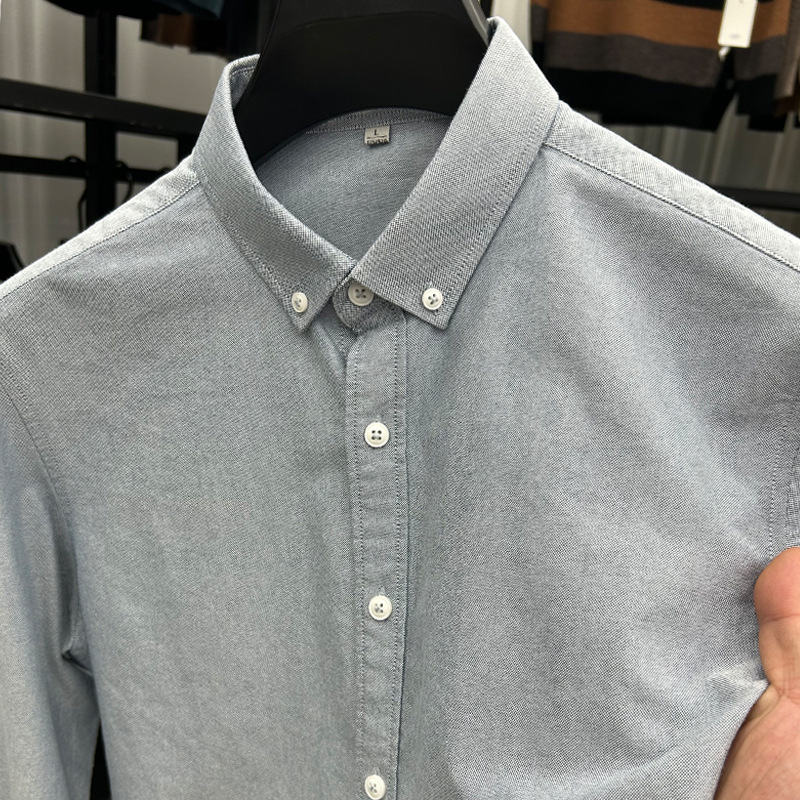 고급스러운 옥스퍼드 원단의 화이트 셔츠, 남성용 긴팔 봄철 멋스러운 아우터 캐주얼 셔츠, 남성용 상의스토어 가기