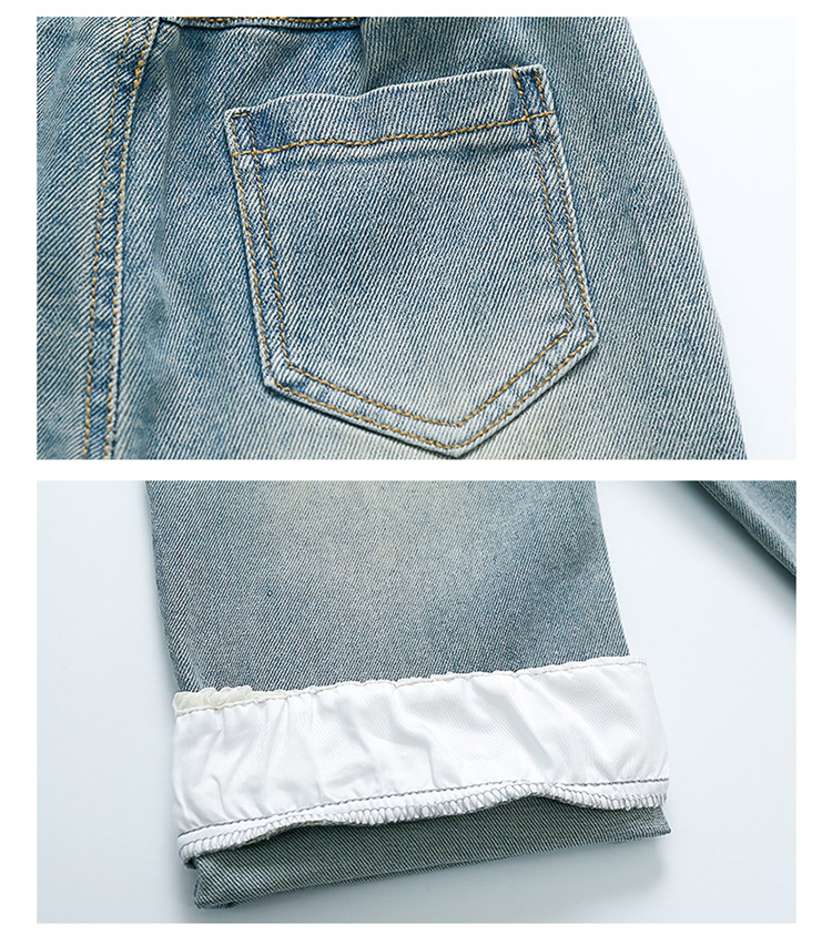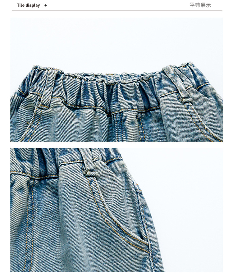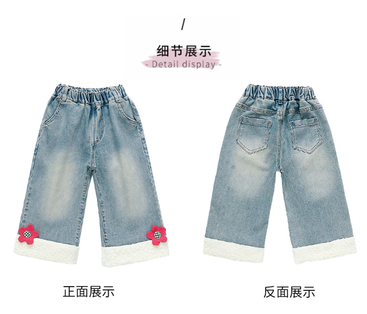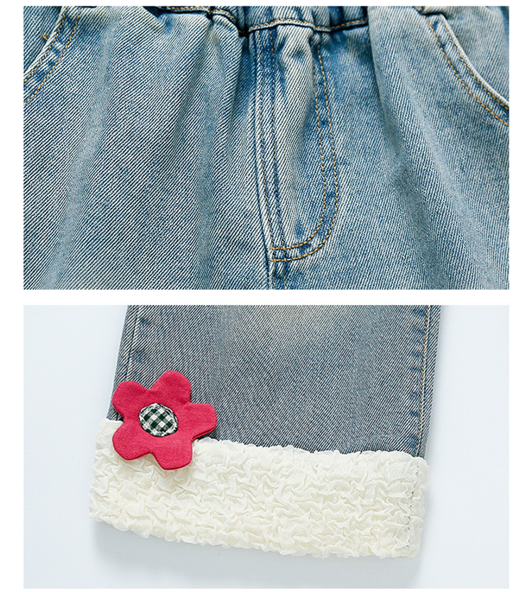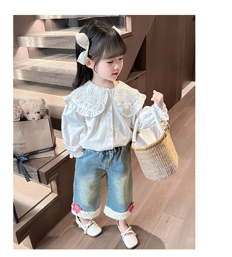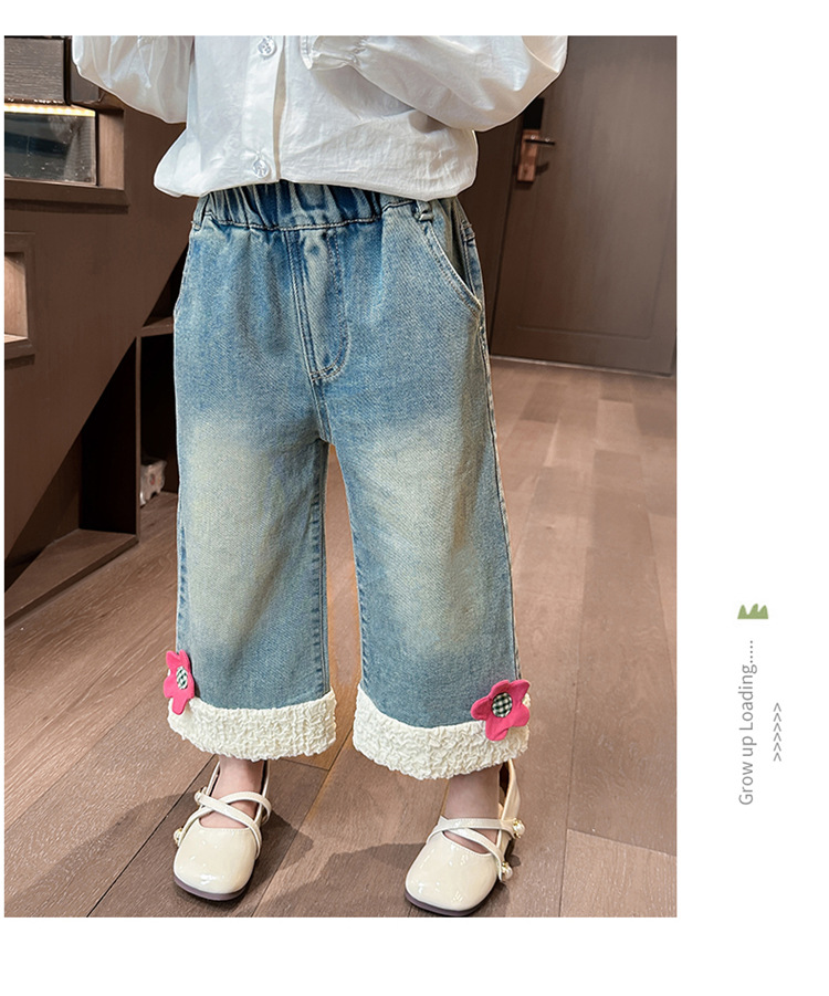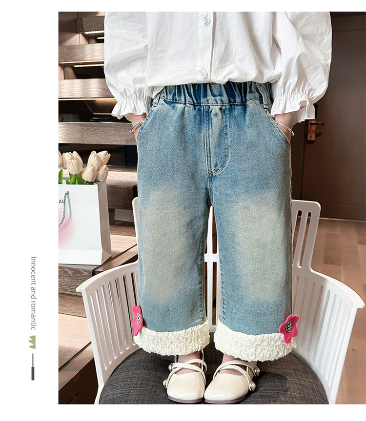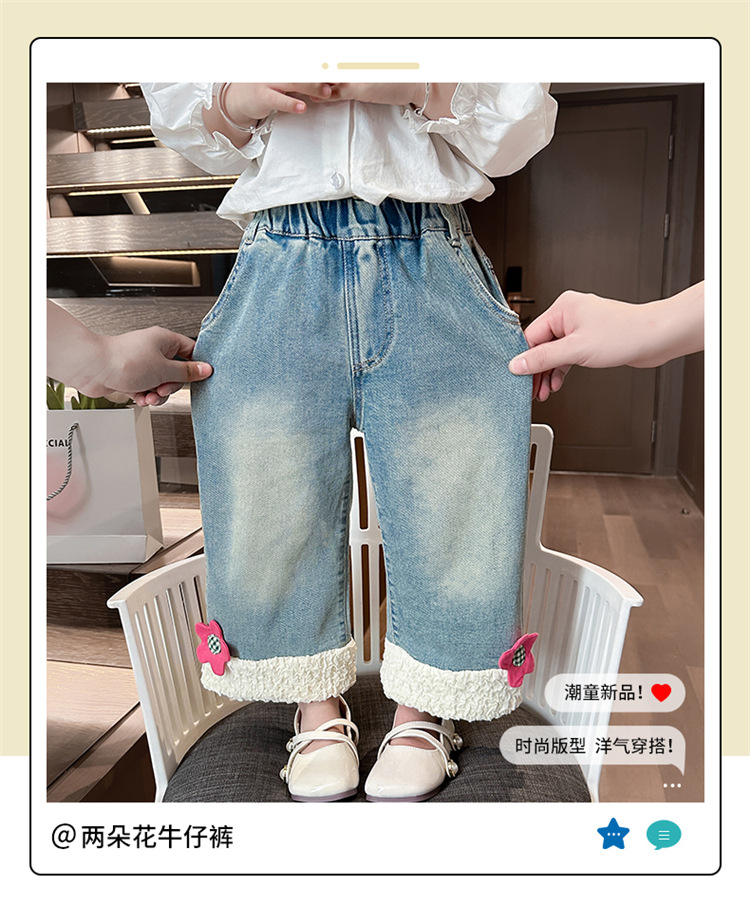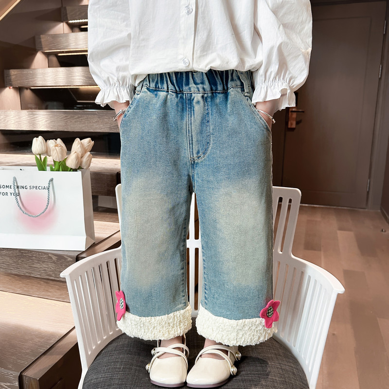 여아용 두 꽃 장식 데님 팬츠 2024 봄 가을 신상 유행 아동복 여아 캐주얼 스포츠 바지스토어 가기
