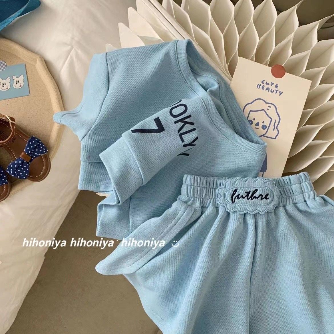 여자 여름 세트 2023 새로운 여성 아기 한국 스타일 유행 웨스턴 스타일 짧은 소매 티셔츠 반바지 투피스 세트스토어 가기