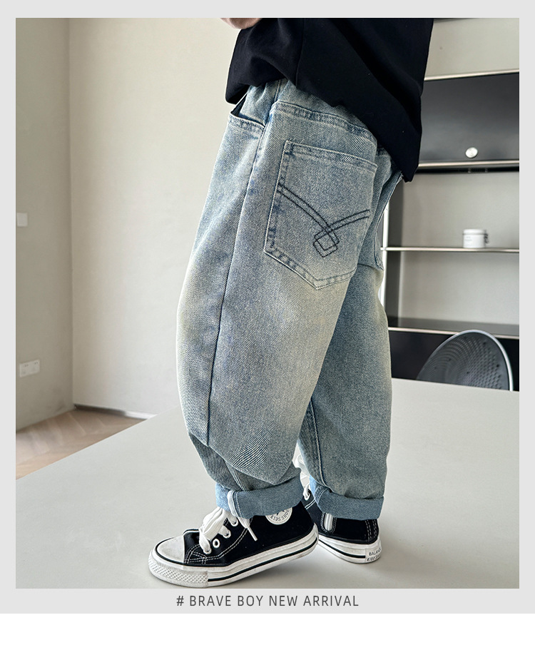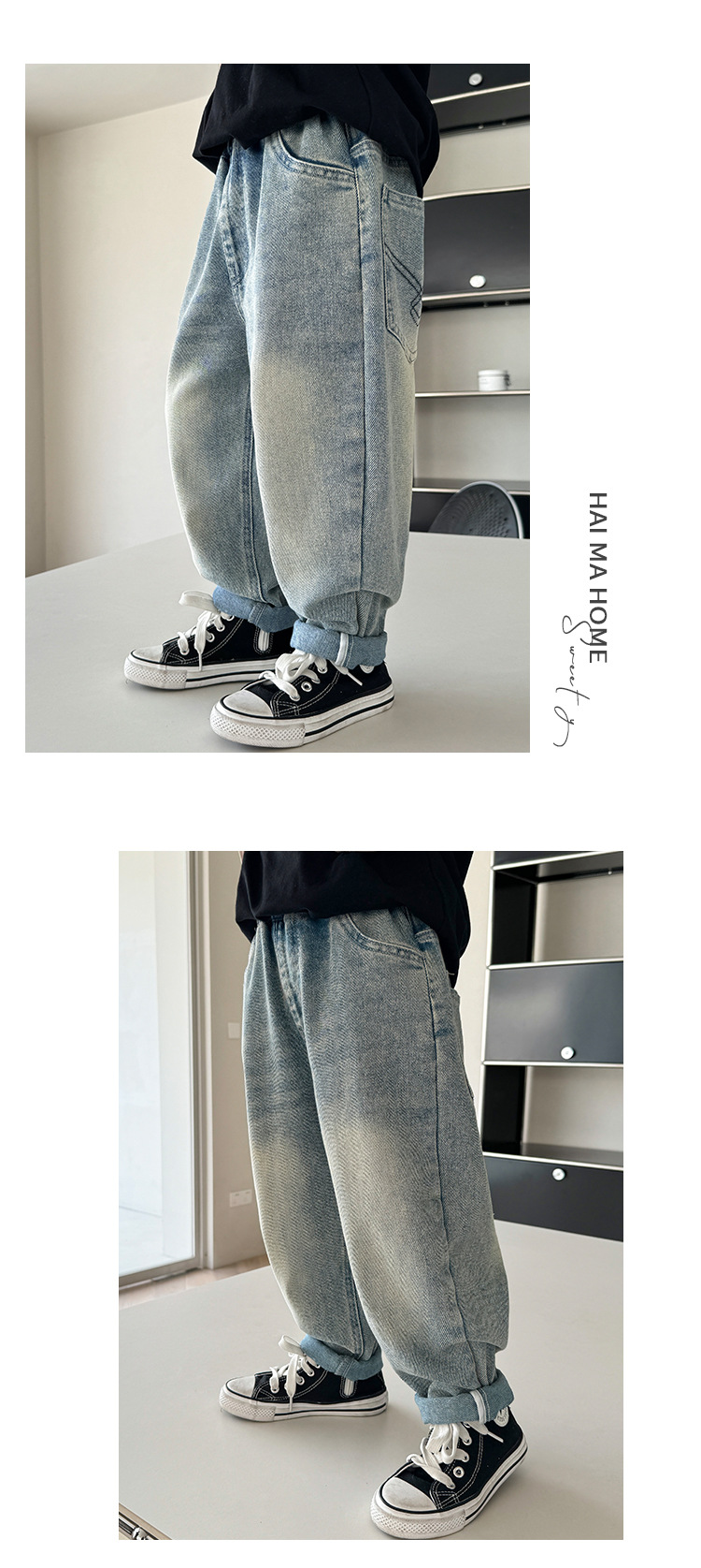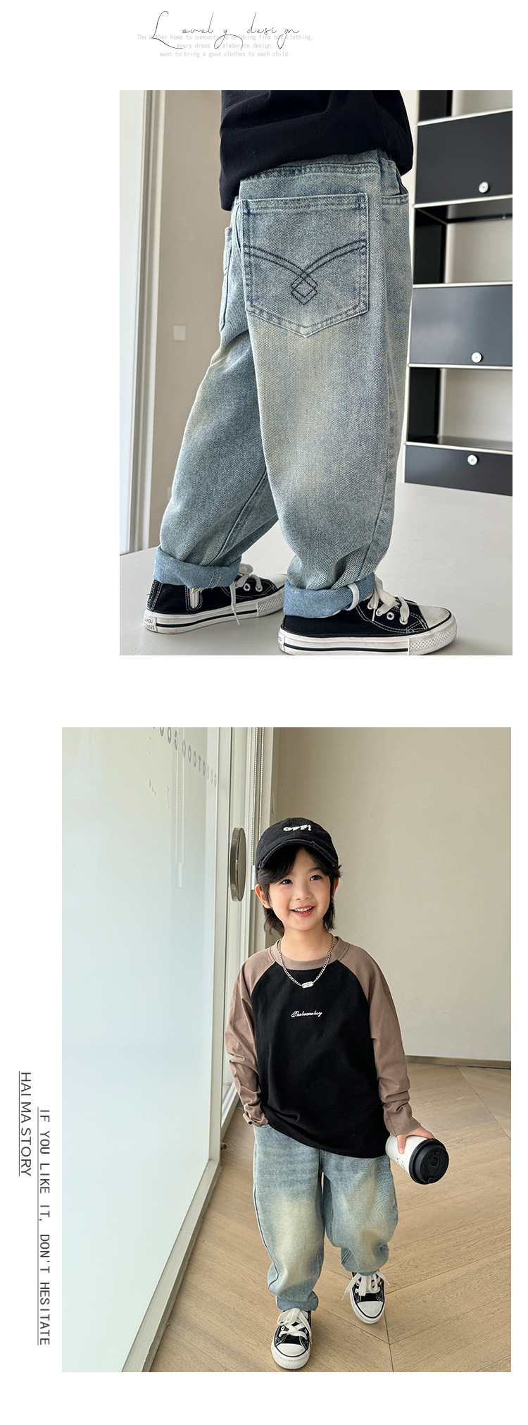 해마가족 남아용 청바지 2025 신상 가을 아동복 한국 스타일 바지 워싱 다용도 중대형 아동 트렌디스토어 가기