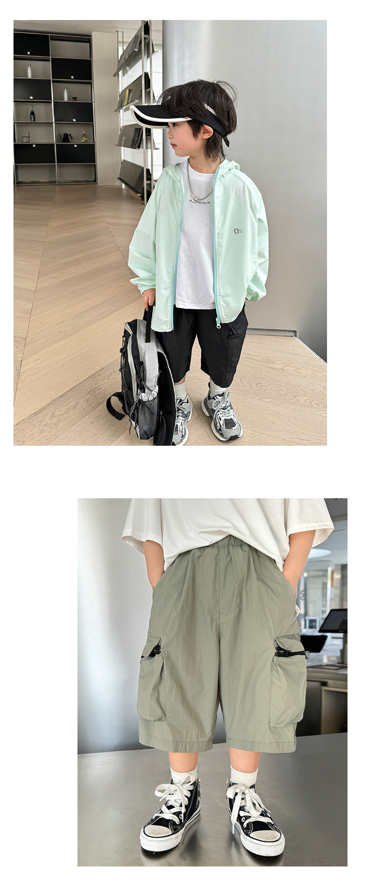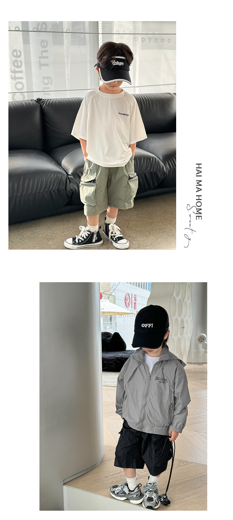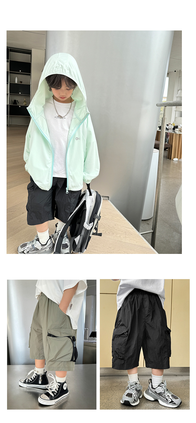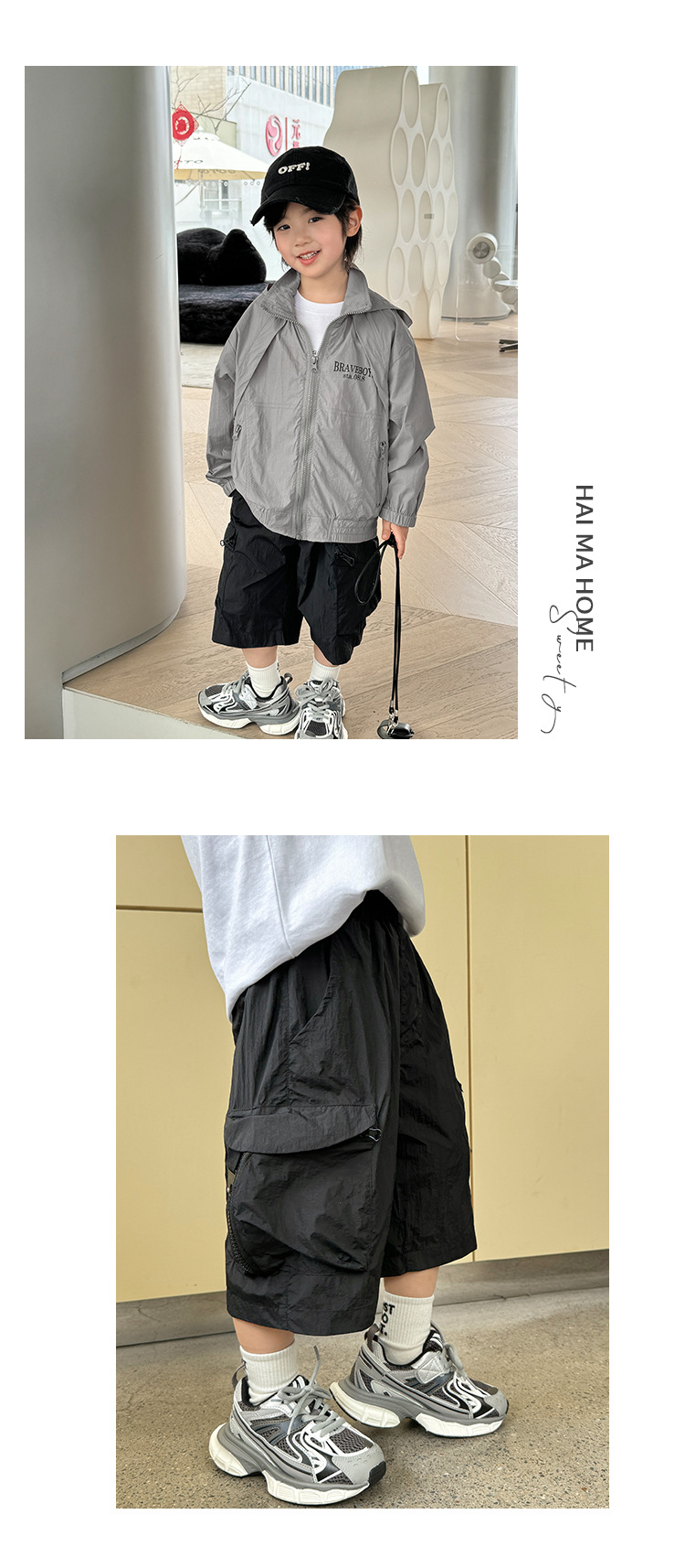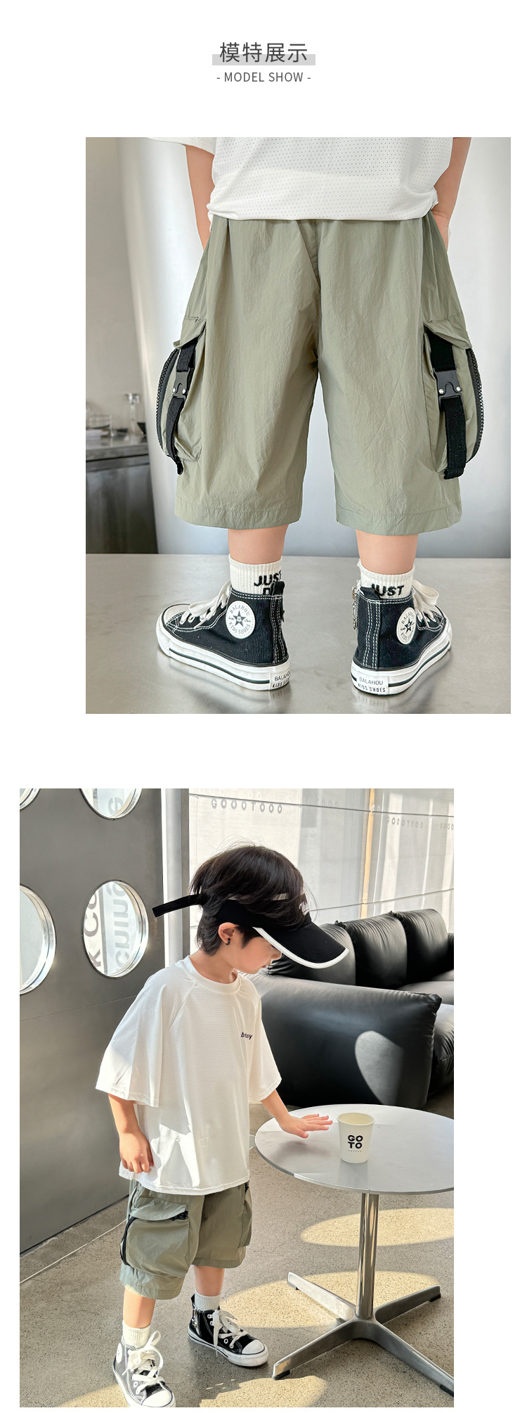 Haima의 소년 작업복 바지 2025 새로운 여름 어린이 한국 스타일 아동복 속건 반바지 5부 바지 중간 바지스토어 가기