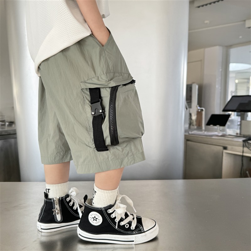 Haima의 소년 작업복 바지 2025 새로운 여름 어린이 한국 스타일 아동복 속건 반바지 5부 바지 중간 바지