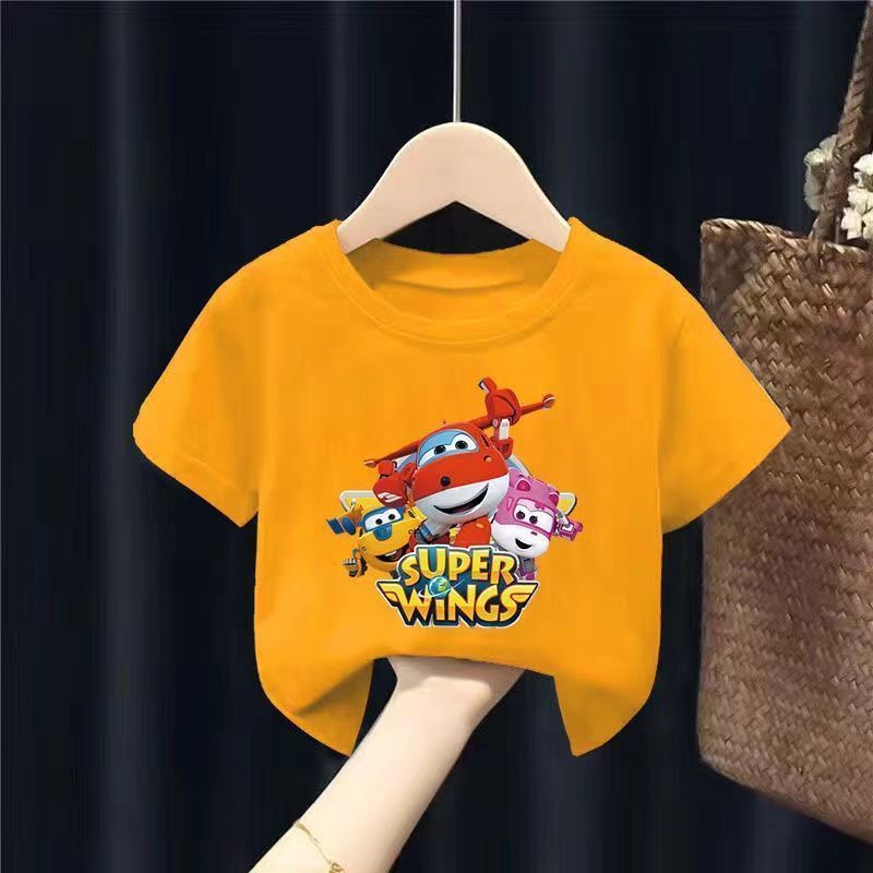 슈퍼 플라잉 맨 티셔츠 소년 여름 반팔 아기 탑 2024 새로운 여름 잘 생긴 귀여운 트렌디 아동복스토어 가기