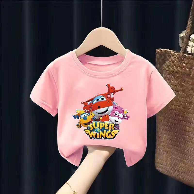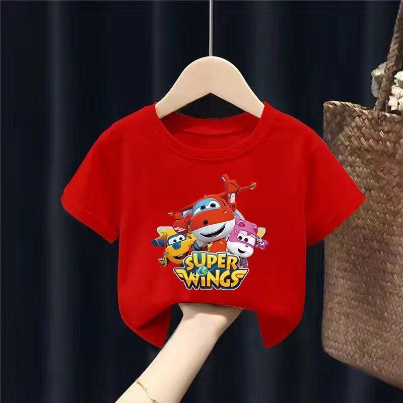 슈퍼 플라잉 맨 티셔츠 소년 여름 반팔 아기 탑 2024 새로운 여름 잘 생긴 귀여운 트렌디 아동복