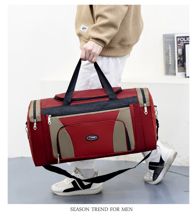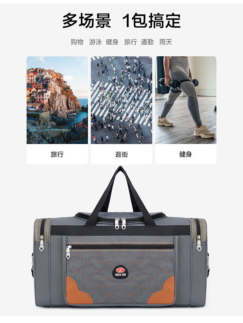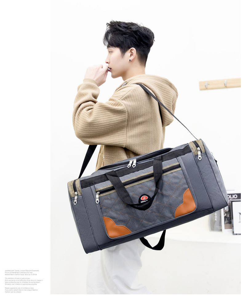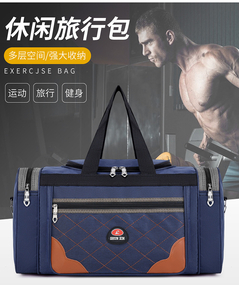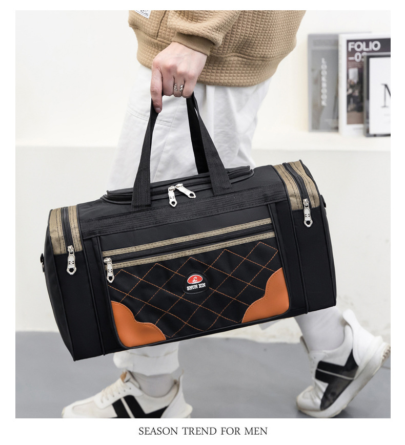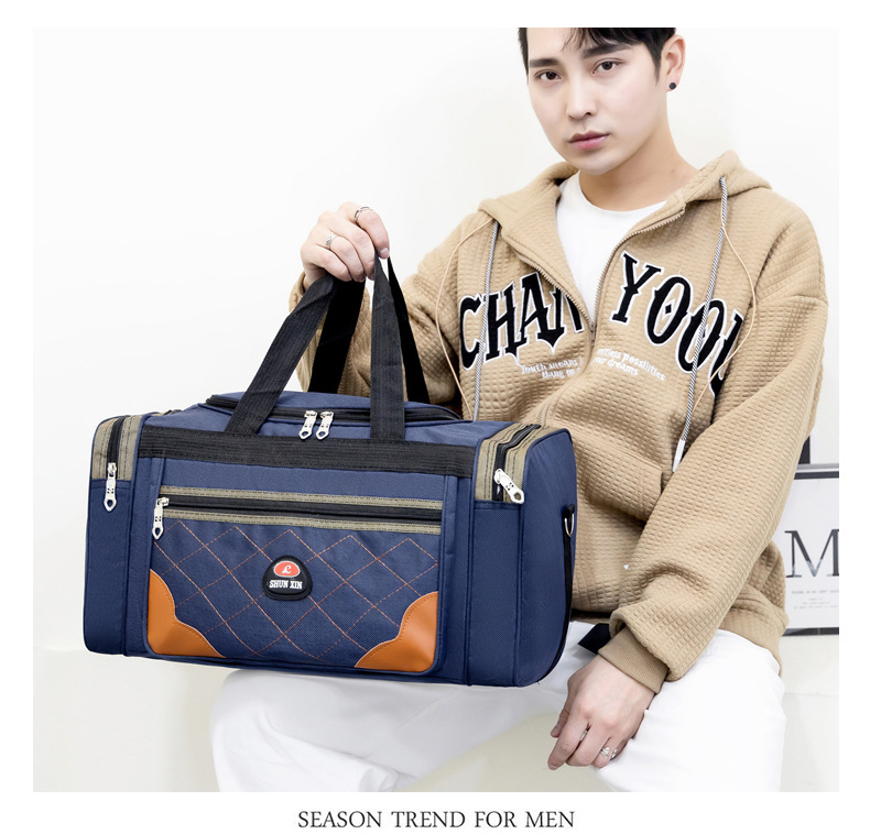 새로운 대용량 피트니스 가방 마름모 디자인 어깨 메신저 가방 인쇄 가능한 로고 단거리 여행 가방 보관 가방스토어 가기
