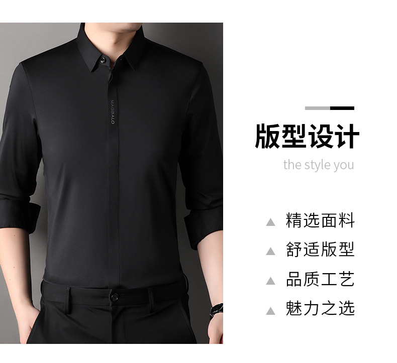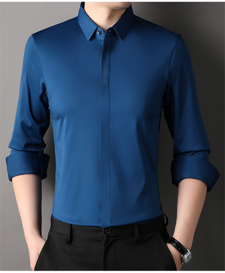 남성용 긴팔 셔츠, 가을 캐주얼, 다용도, 주름 방지, 다림질 필요 없음, 다크 플래킷 심리스 셔츠, 가볍고 성숙한 스타일스토어 가기