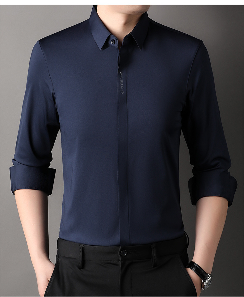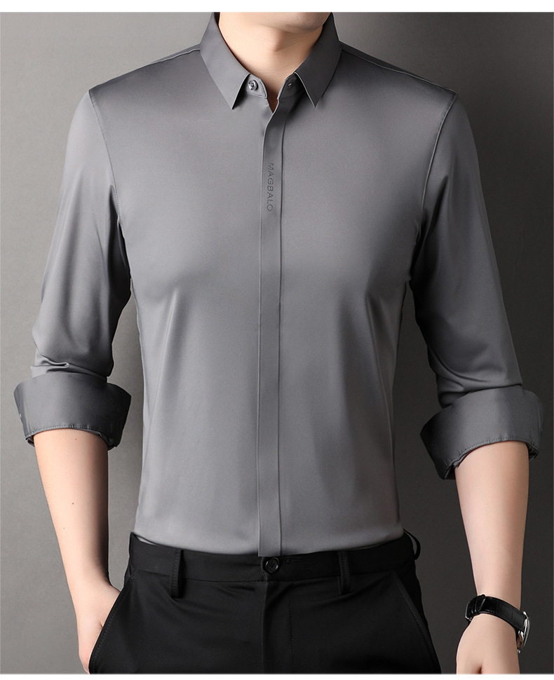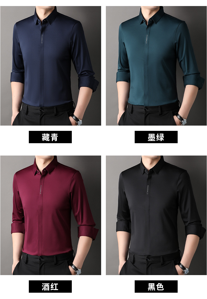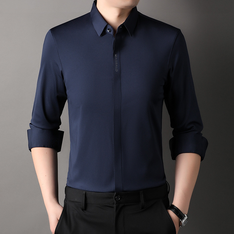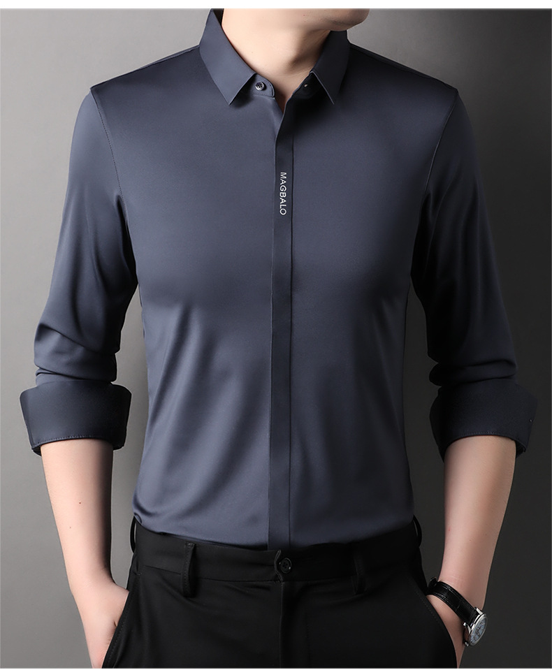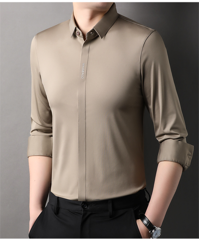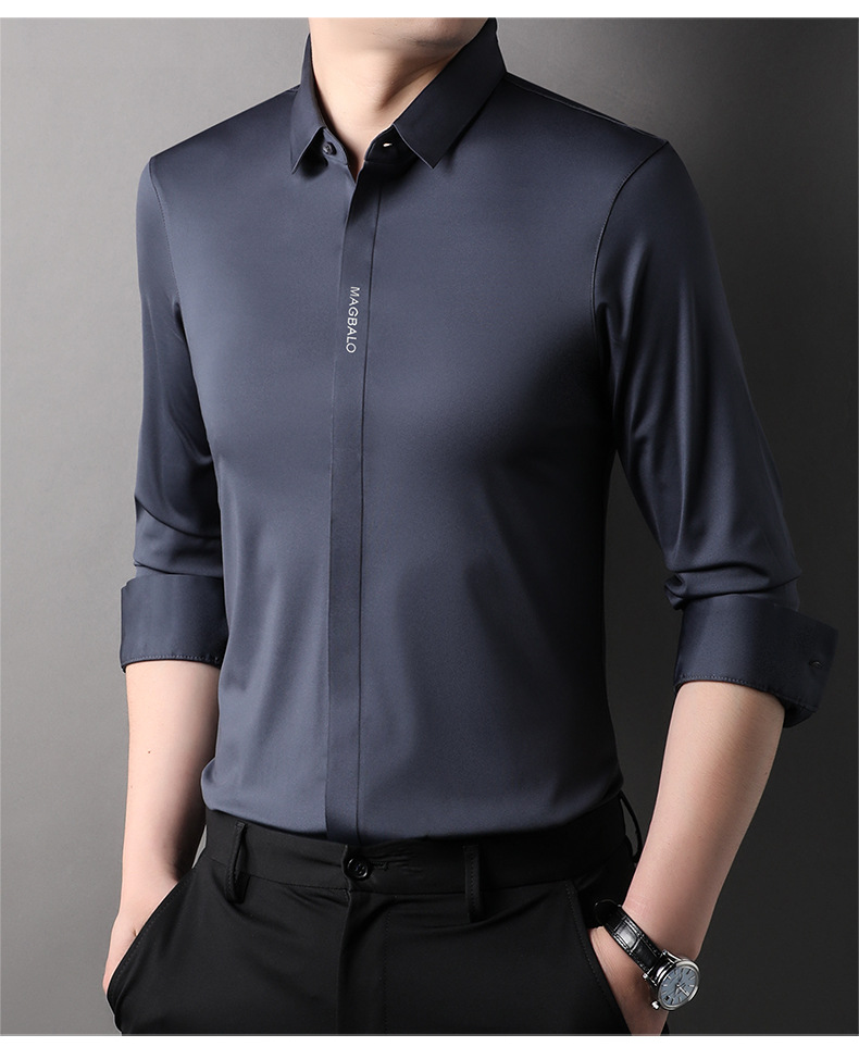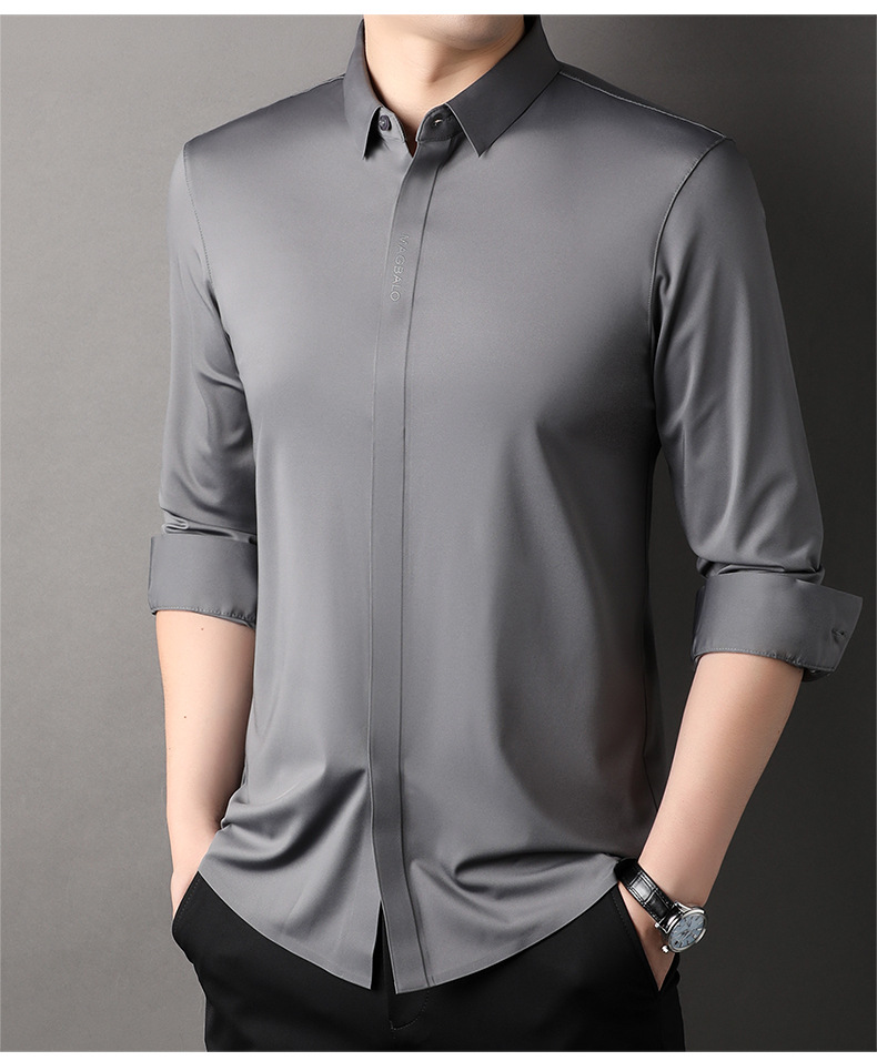 남성용 긴팔 셔츠, 가을 캐주얼, 다용도, 주름 방지, 다림질 필요 없음, 다크 플래킷 심리스 셔츠, 가볍고 성숙한 스타일