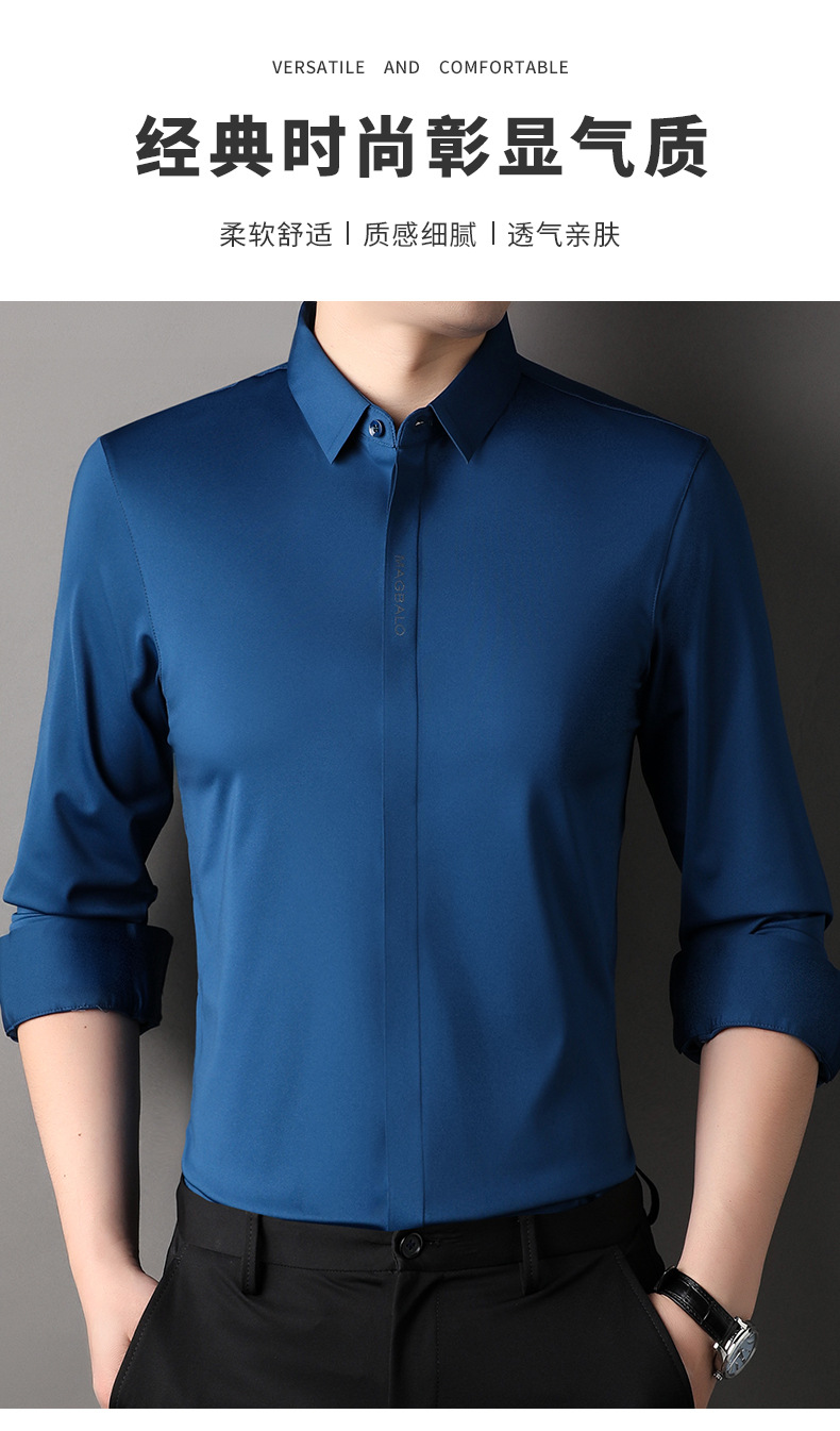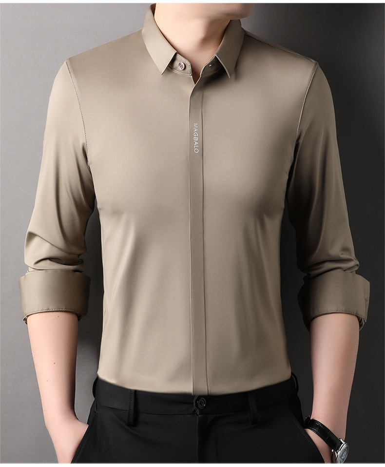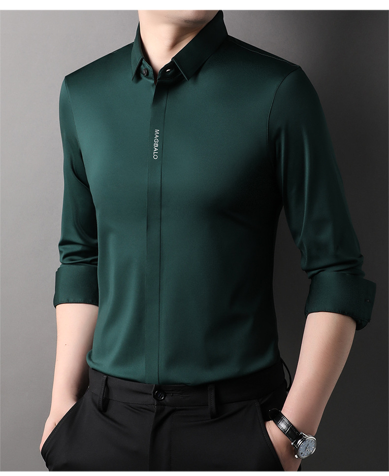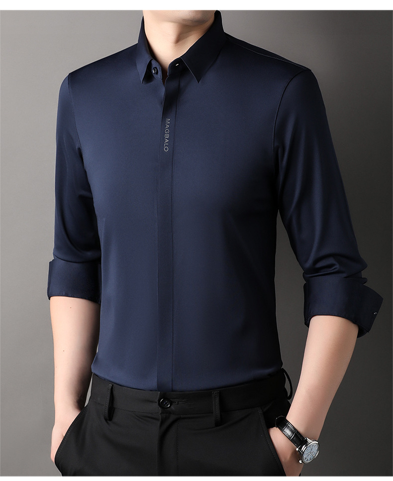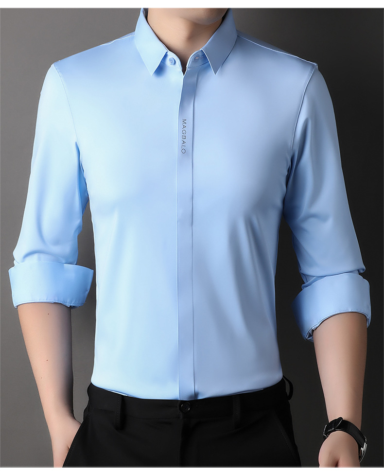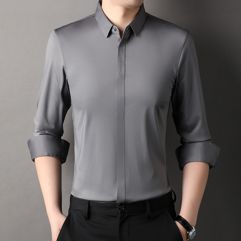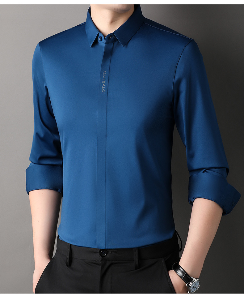 남성용 긴팔 셔츠, 가을 캐주얼, 다용도, 주름 방지, 다림질 필요 없음, 다크 플래킷 심리스 셔츠, 가볍고 성숙한 스타일