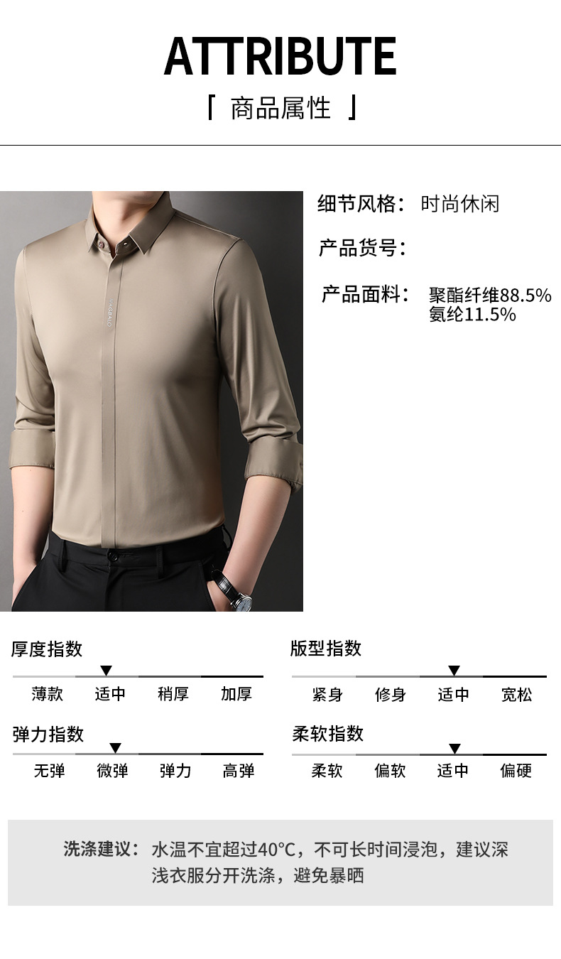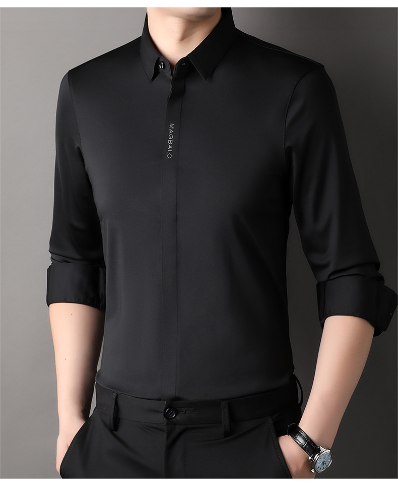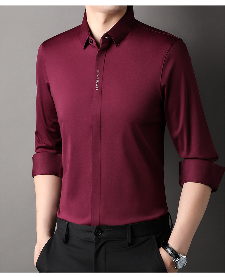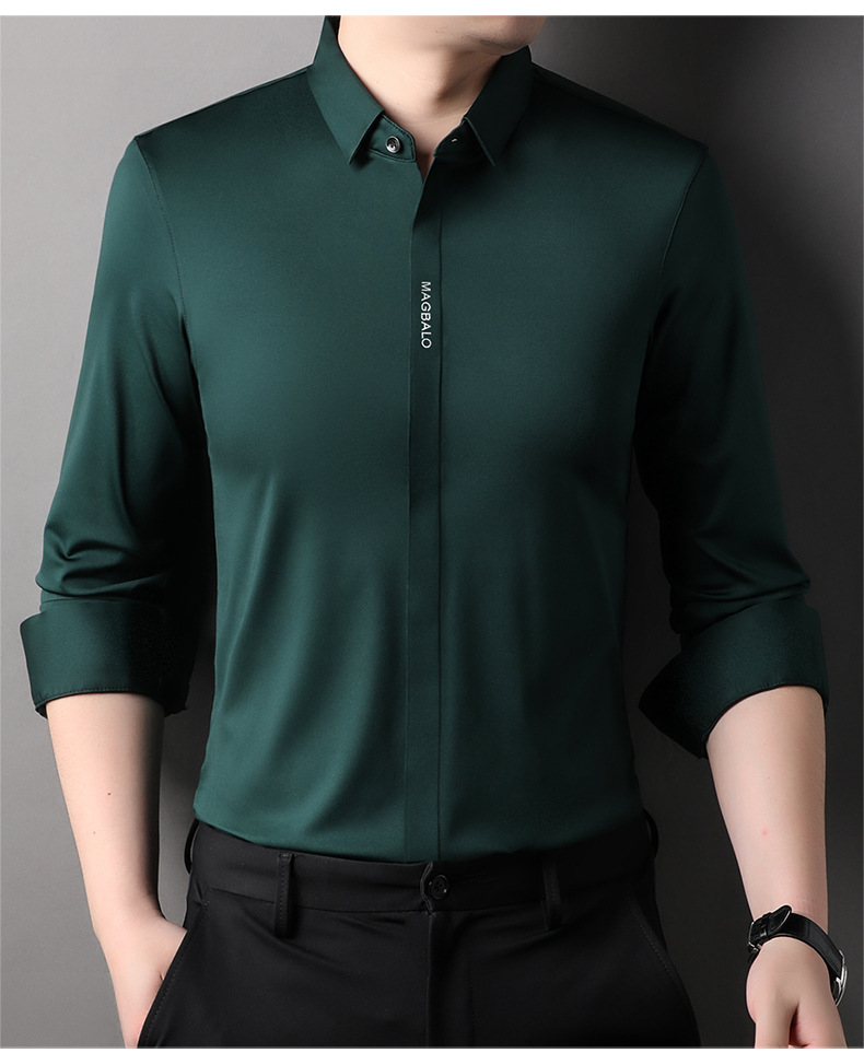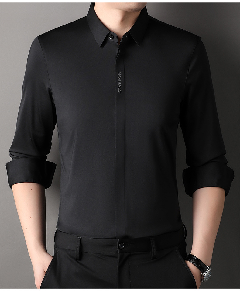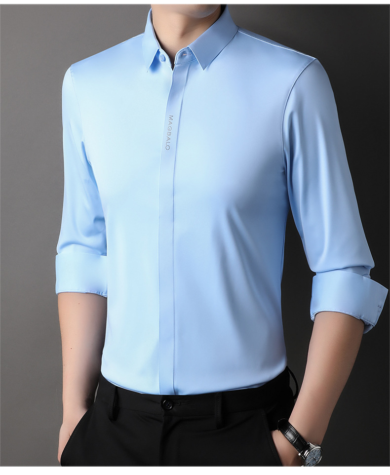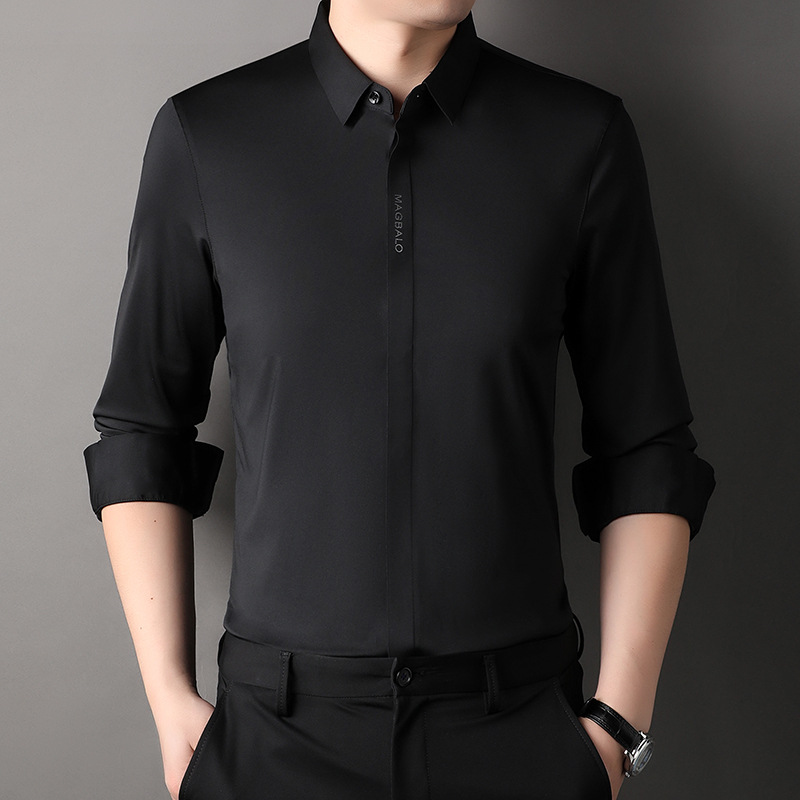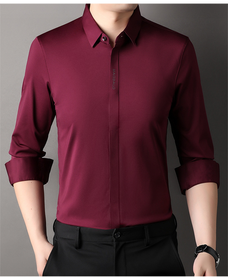 남성용 긴팔 셔츠, 가을 캐주얼, 다용도, 주름 방지, 다림질 필요 없음, 다크 플래킷 심리스 셔츠, 가볍고 성숙한 스타일
