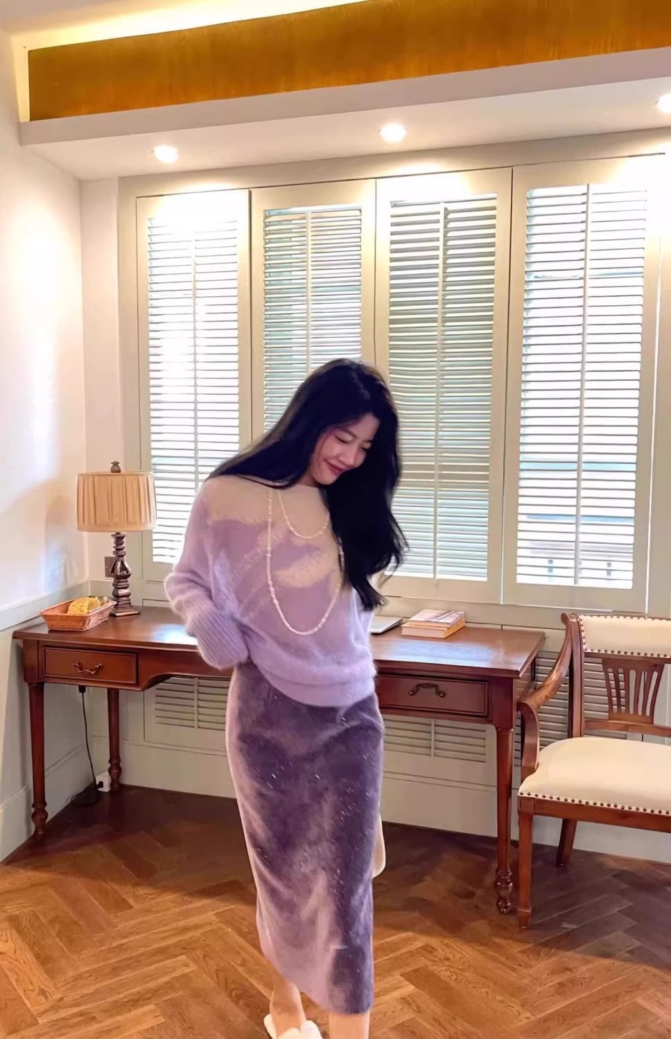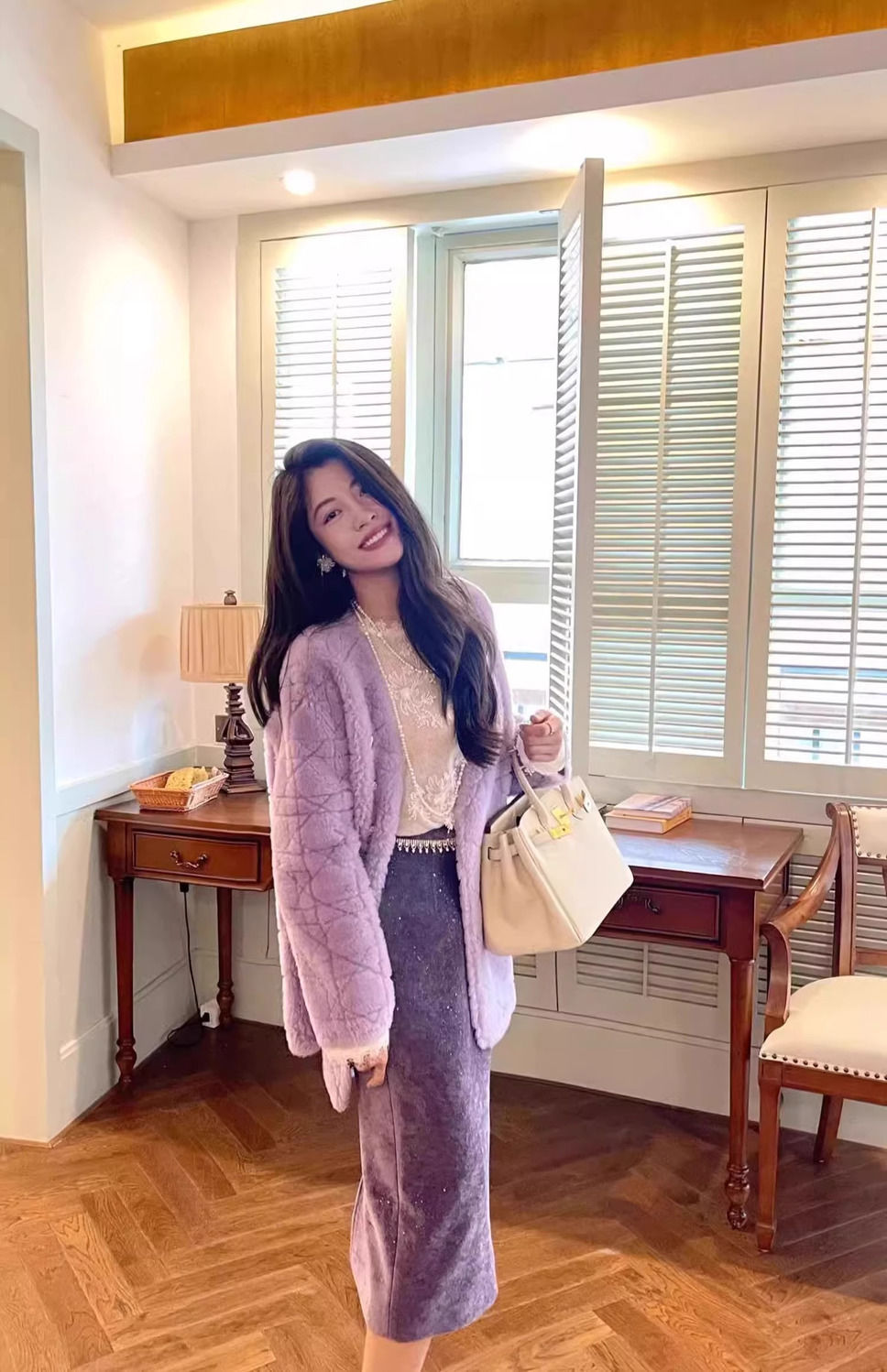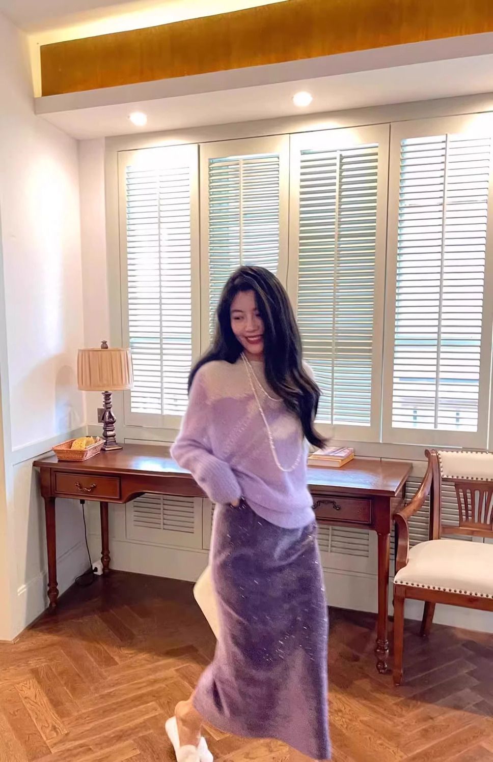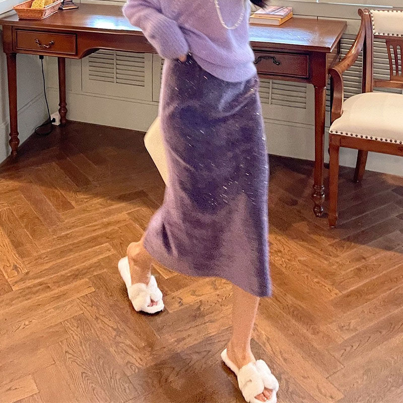 2025년 봄 신상 여성용 보라색 스커트, 고급스러운 캐주얼 패션, 중간 길이, 다용도 캐주얼 스커트스토어 가기