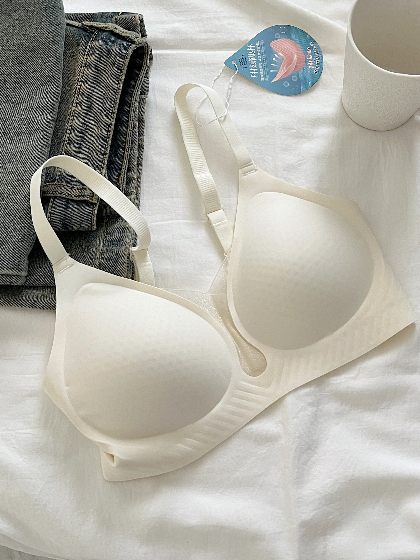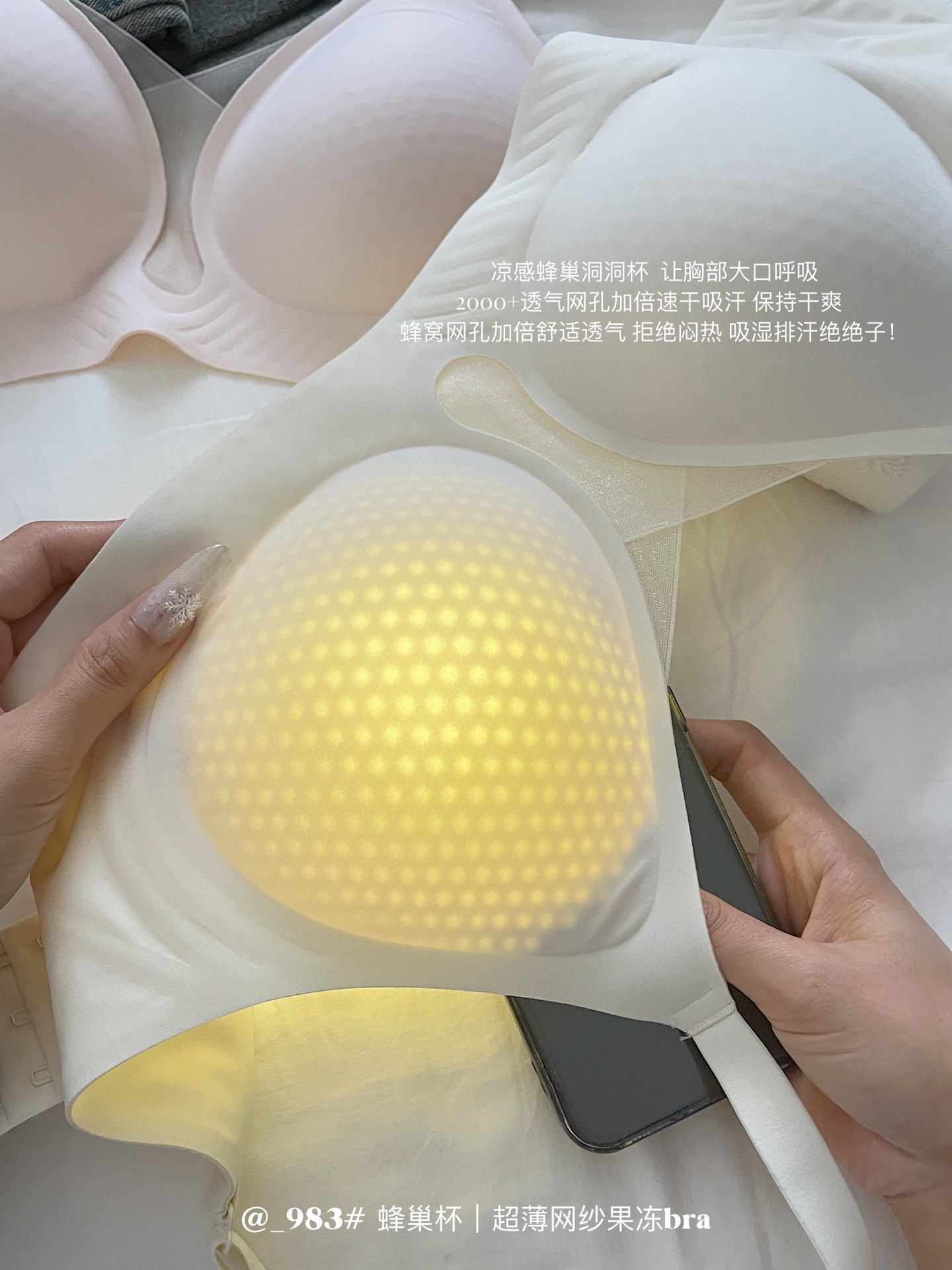 여름 새로운 젤리 속옷 15D 초박형 얼음 피부 원단 시원한 느낌 벌집 구멍 고정 비 달리기 컵 브래지어스토어 가기