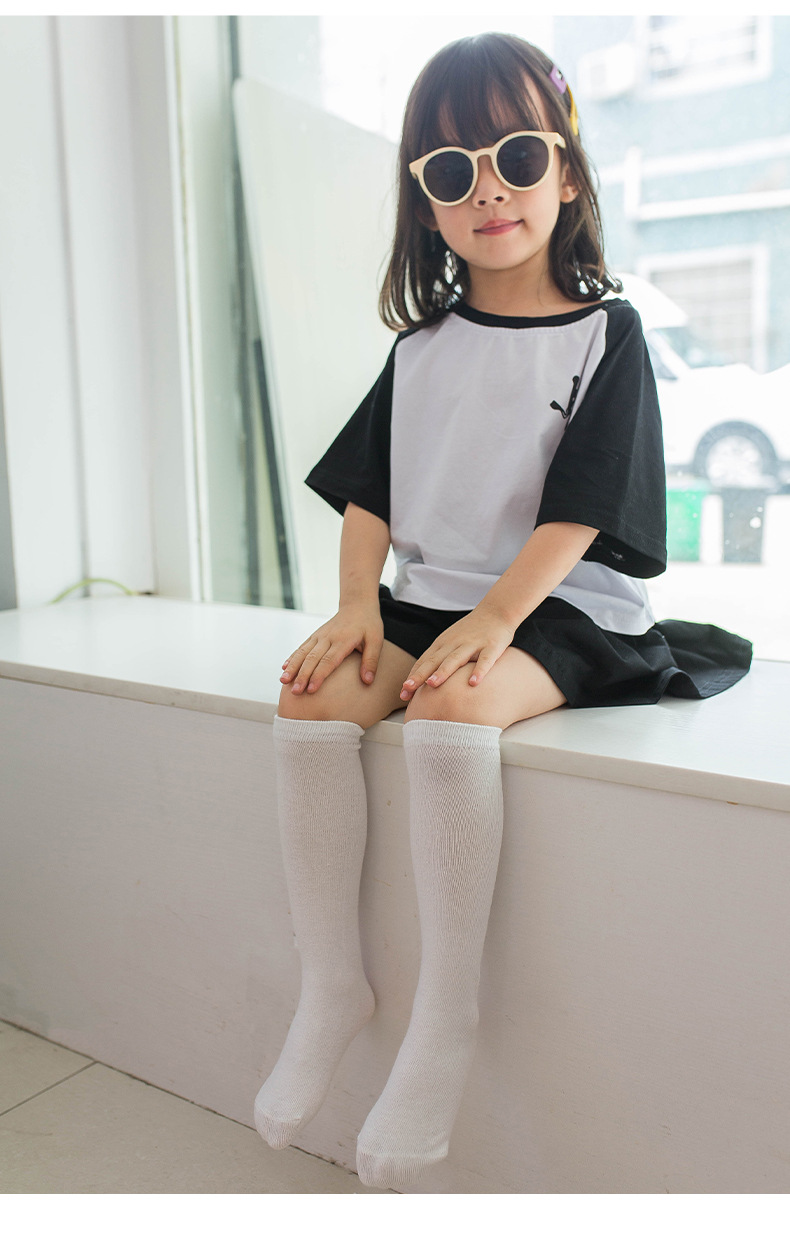 어린이 양말 봄과 가을 평면 소녀 중반 송아지 양말 한국 패션 복고풍 단색 아기 소녀 스타킹 가을 더미 양말스토어 가기