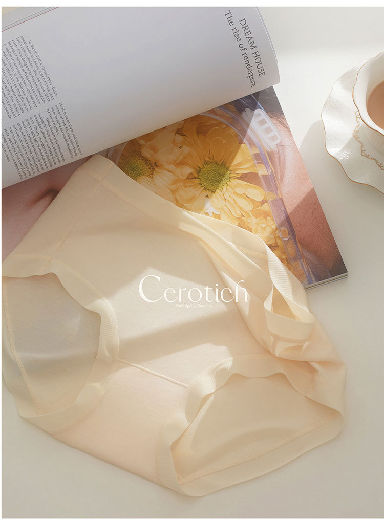 Cerotich 여성의 벌거 벗은 편안한 단색 브리프 여름 얇은 속옷 중간 허리 섹시한 안티 워킹 라이트 바지