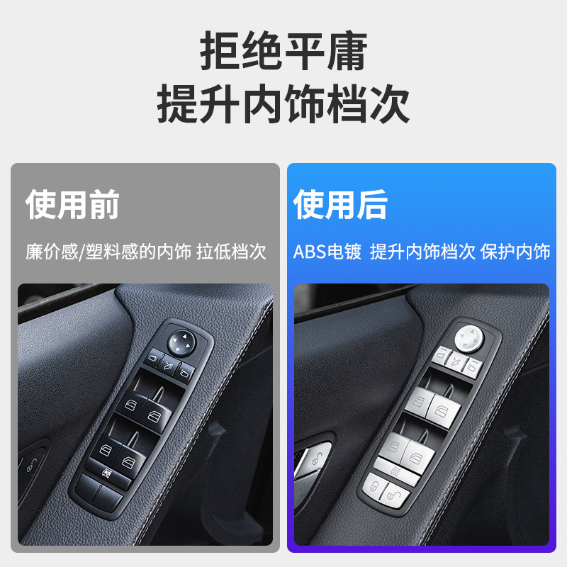 메르세데스-벤츠 오래된 A180B200 ML350 GL450 수정 된 자동차 도어 창 스티어링 휠 스위치 버튼 내부 스티커스토어 가기