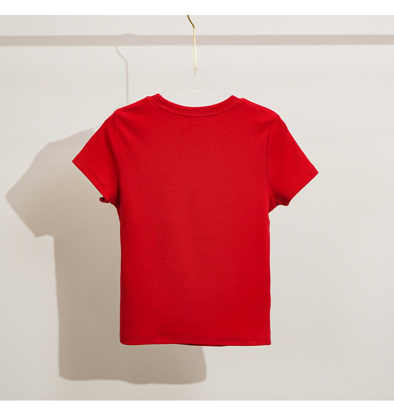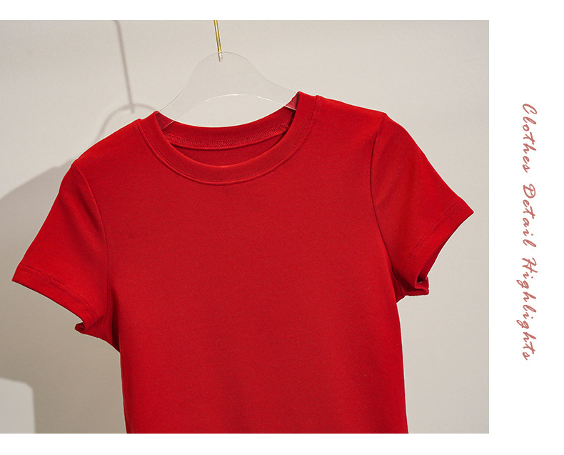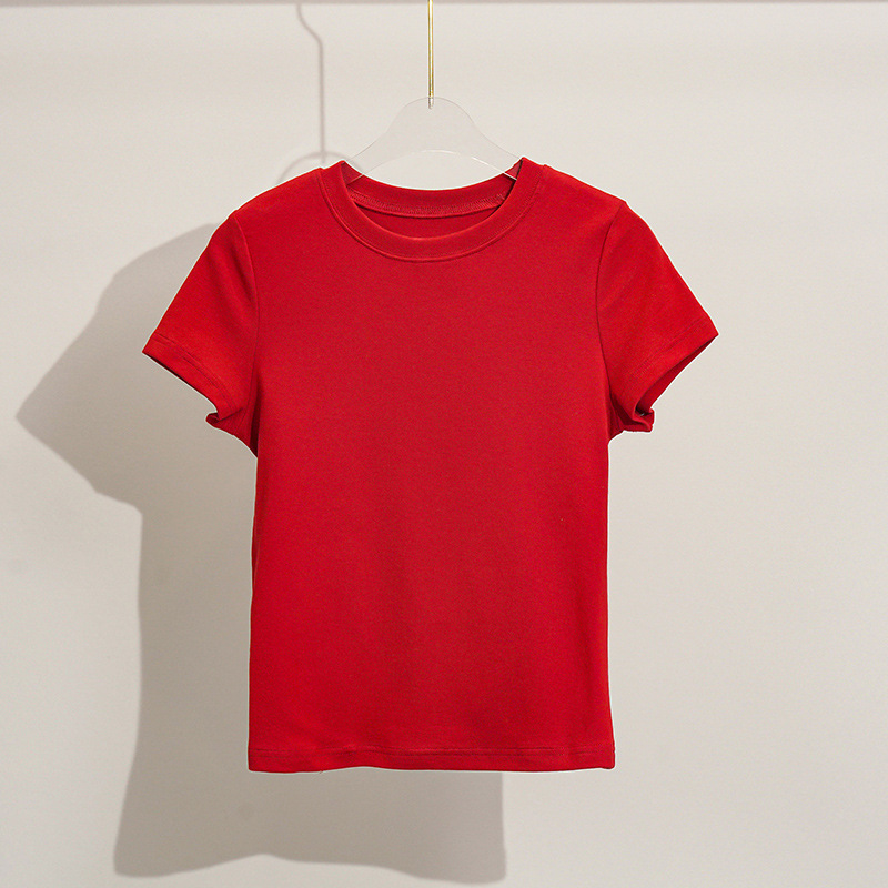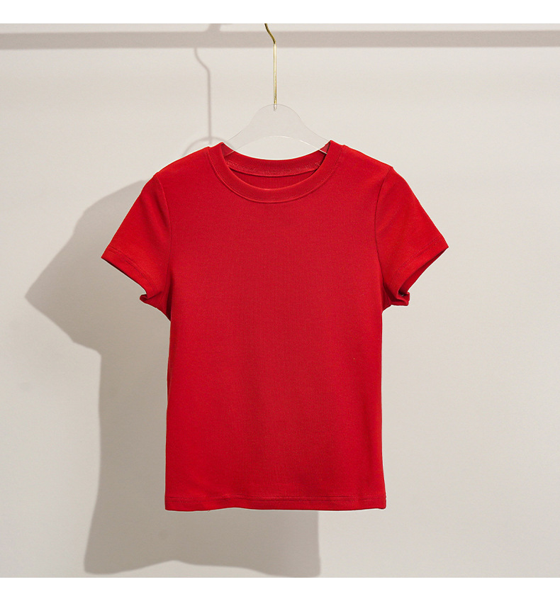 Xiaozhong 2024 봄과 여름 새로운 올 매치 솔리드 컬러 라운드 넥 코튼 심플 슬림 핏 반팔 티셔츠 여성용스토어 가기
