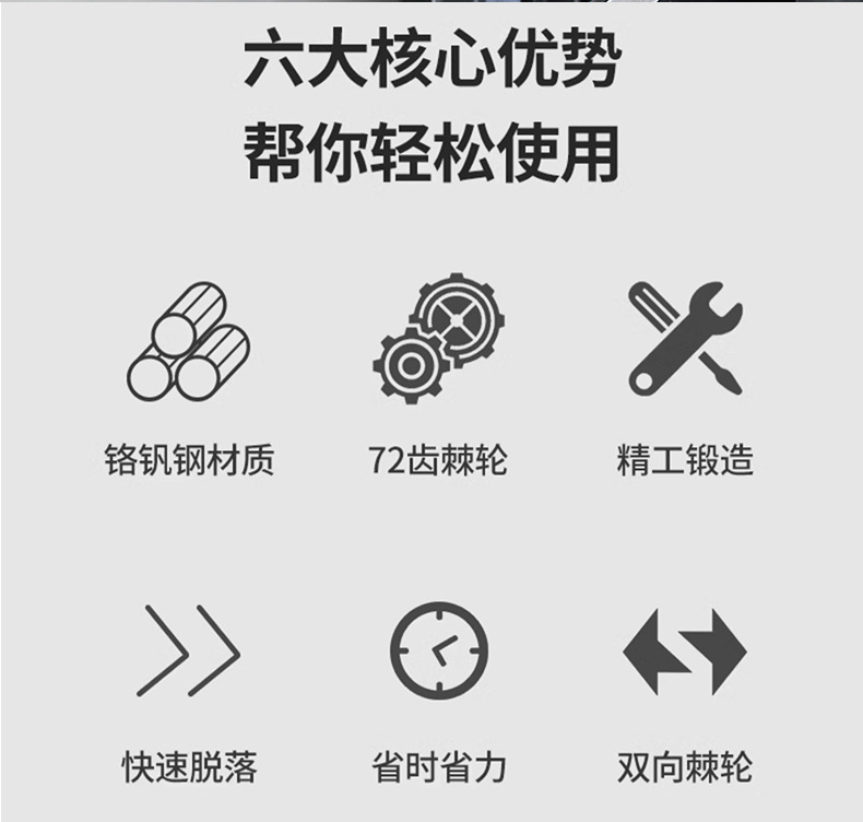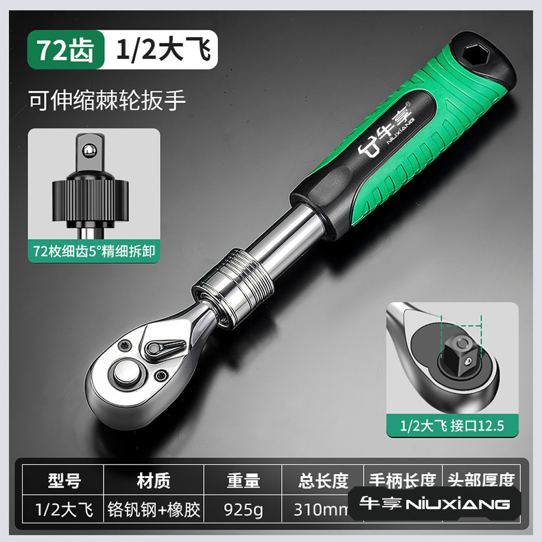 산업용 등급의 빠른 조절 식 래칫 렌치 다기능 단일 헤드 길이 72-치아 대형 플라잉 래칫 렌치스토어 가기