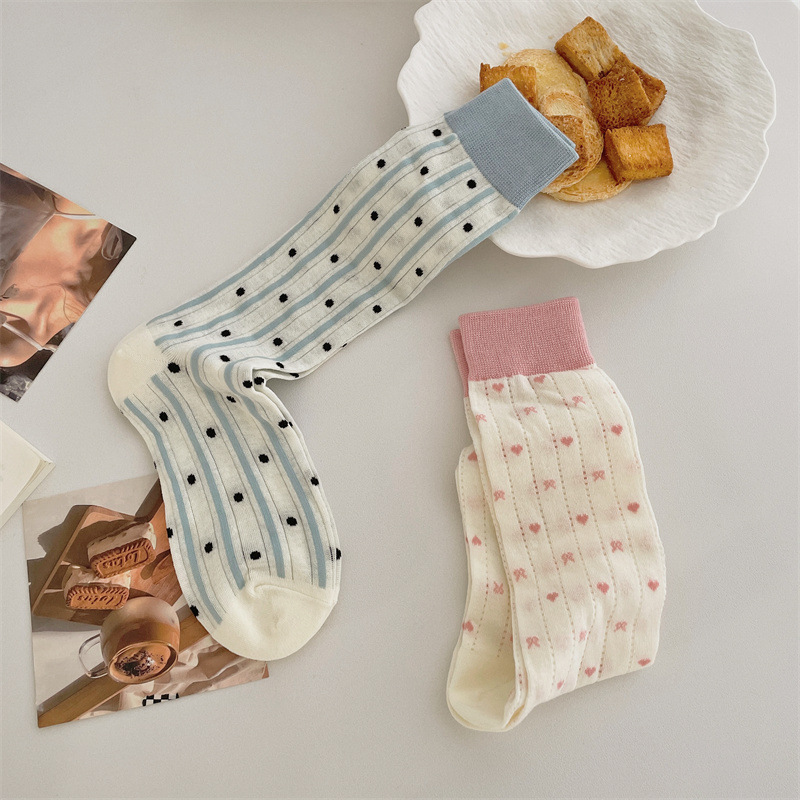 한국 동대문 인 사랑 로리타 종아리 더미 양말 여름 통기성 얇은 물방울 무늬 양말 여성
