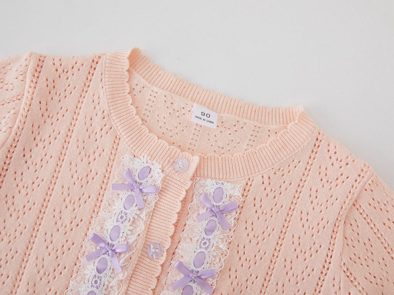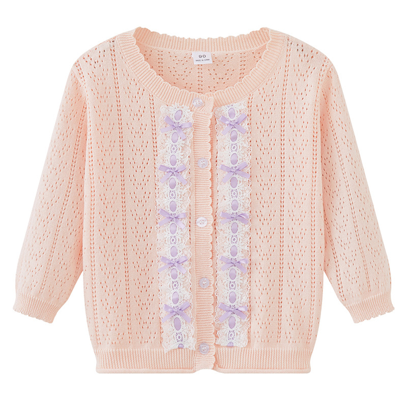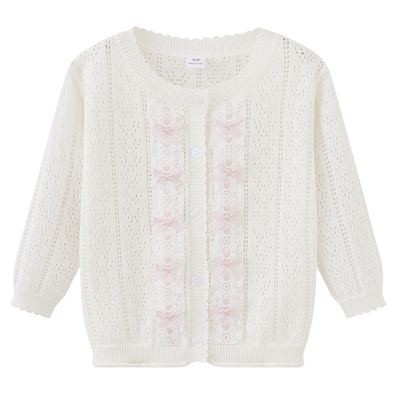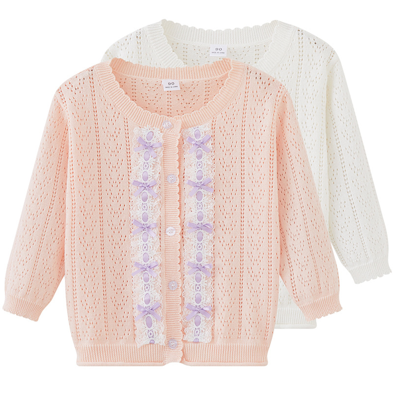 봄과 가을 한국 스타일 레이스 베이비 스웨터 코트 소녀의 긴팔 선 스크린 에어컨 셔츠 얇은 어린이 니트 카디건