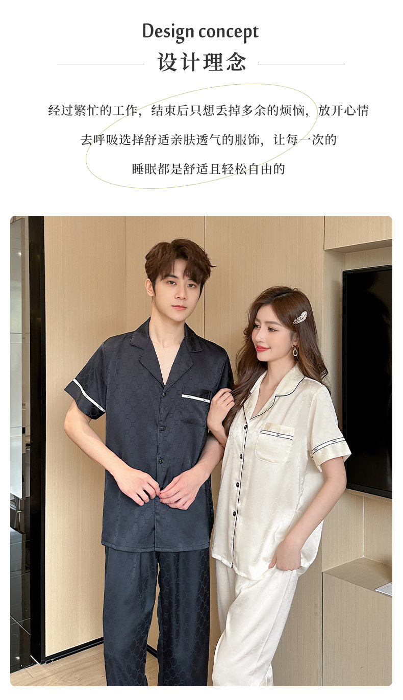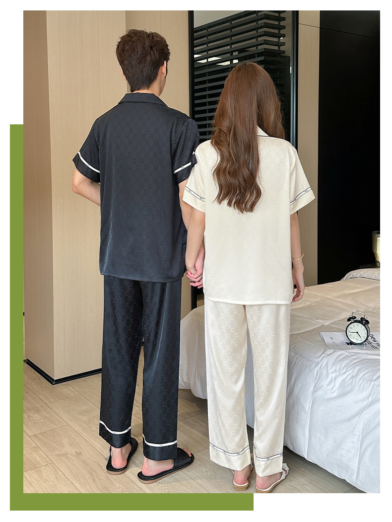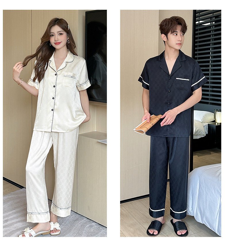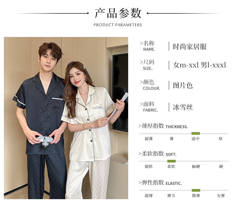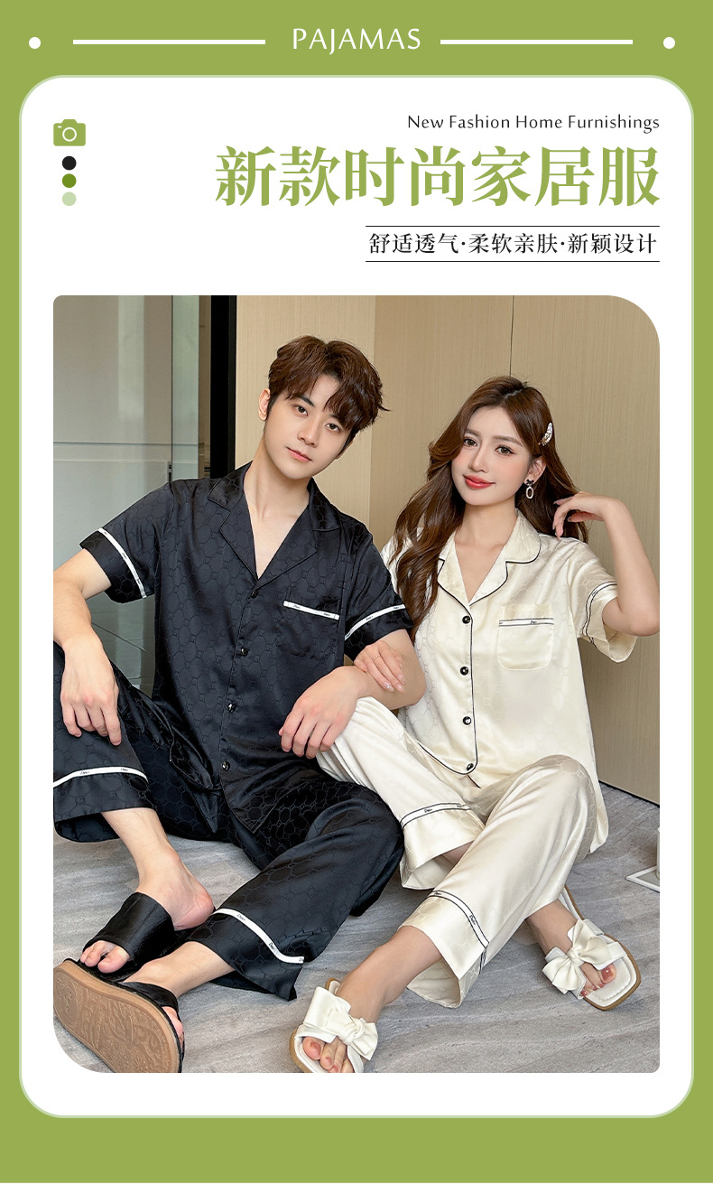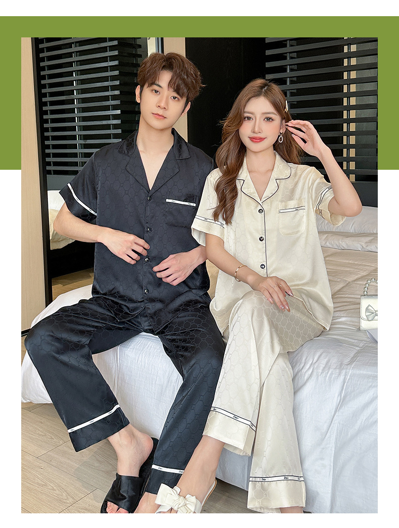 커플 잠옷 여름 아이스 실크 짧은 소매 길이 세트 스타 그물 레드 같은 스타일 플러스 사이즈 인공 실크 홈 웨어
