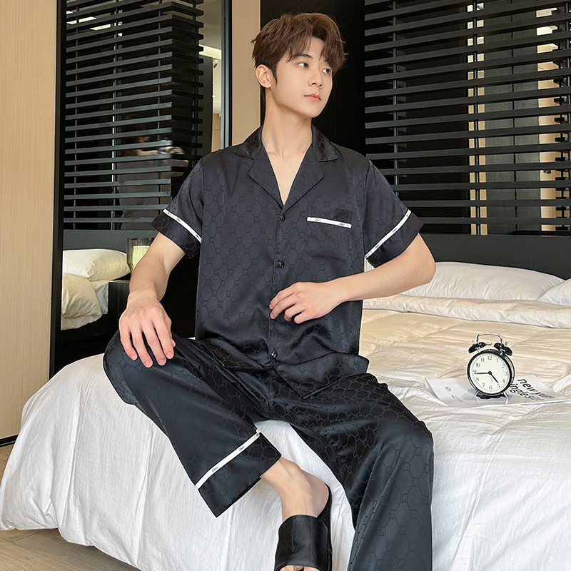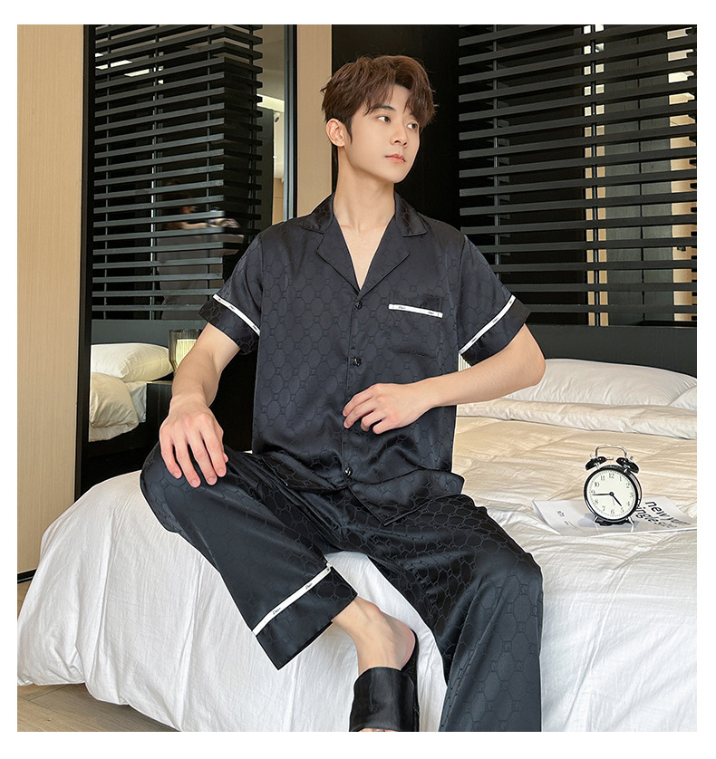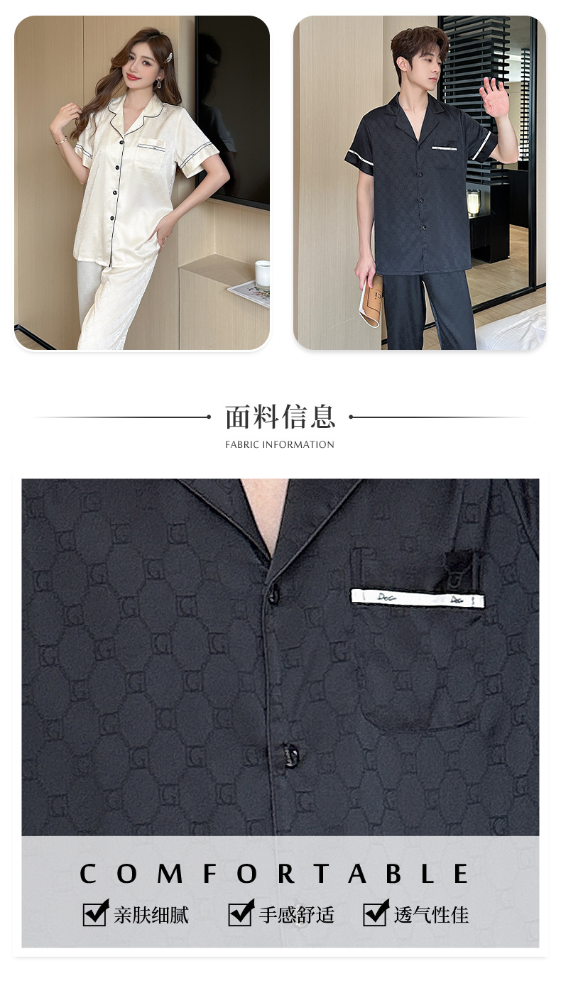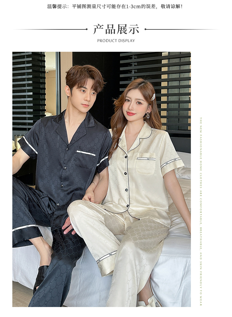 커플 잠옷 여름 아이스 실크 짧은 소매 길이 세트 스타 그물 레드 같은 스타일 플러스 사이즈 인공 실크 홈 웨어스토어 가기