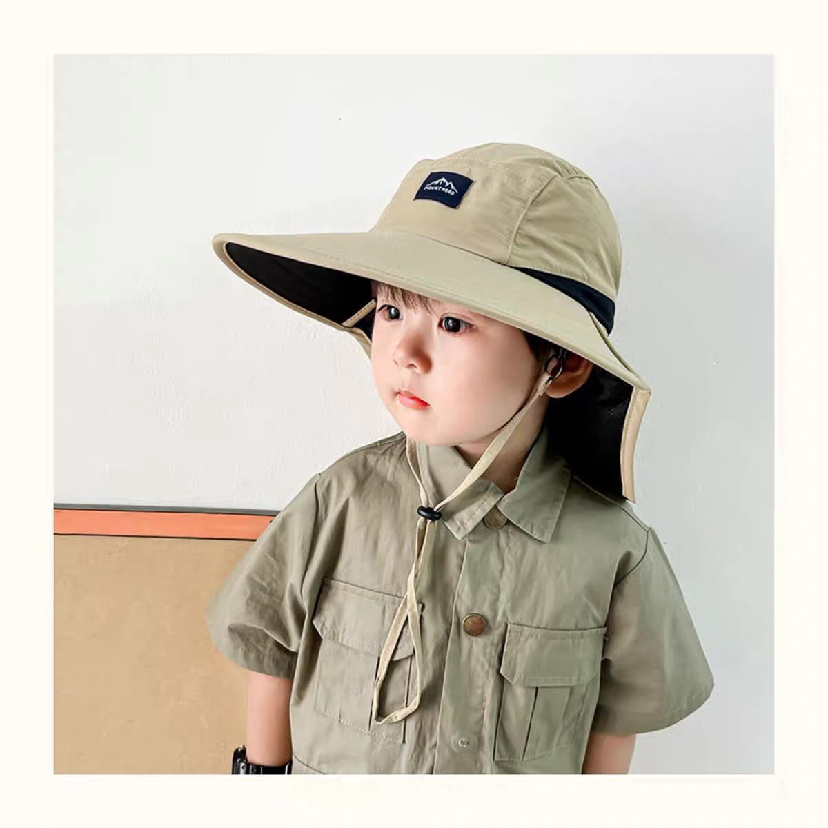 어린이 태양 모자 여름 남성과 여성 아기 모자 목도리 태양 모자 통기성 모자 빠른 건조 야외스토어 가기