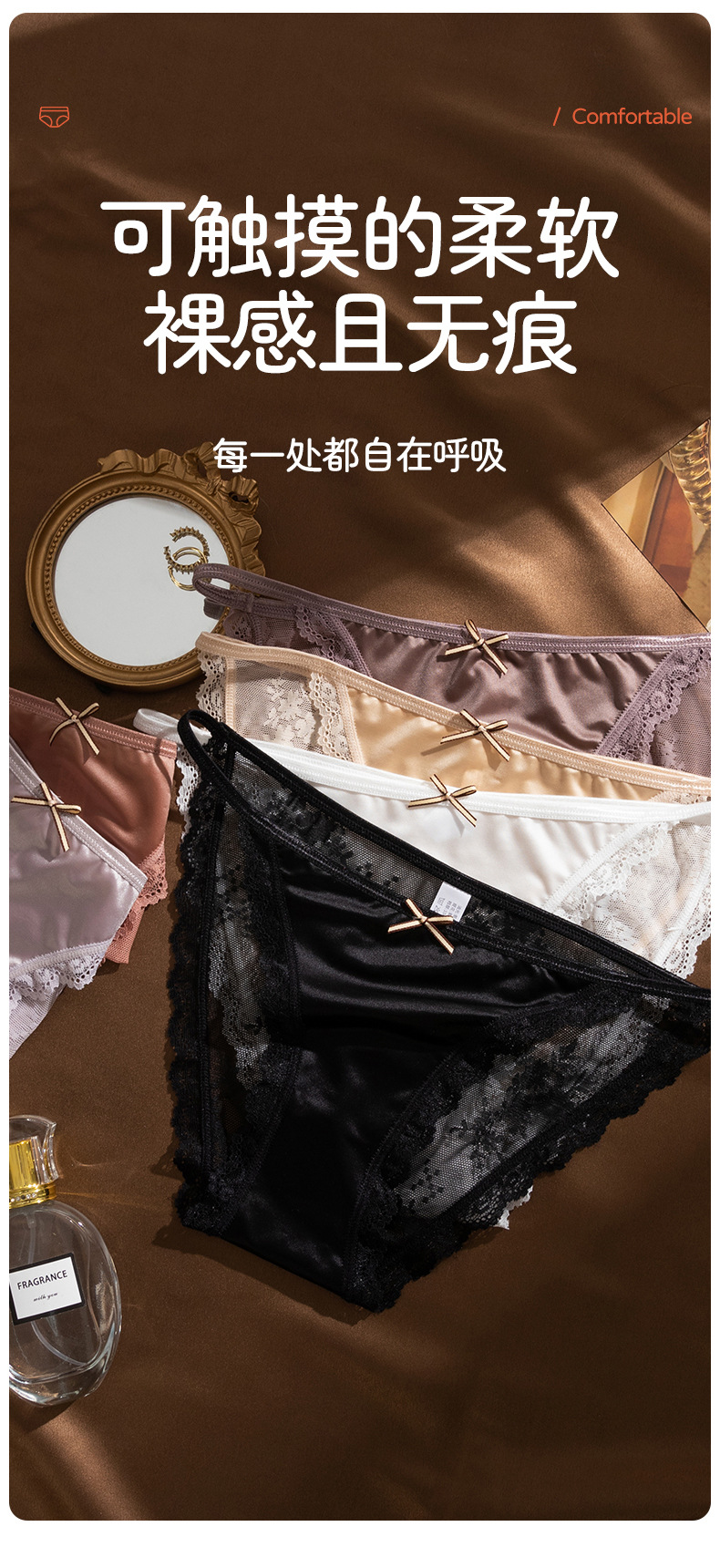 국경을 넘는 신제품 새틴 레이스 섹시 여성 속옷 얇은 끈 무봉제 플러스 사이즈 속건성 레깅스 스타일 팬티