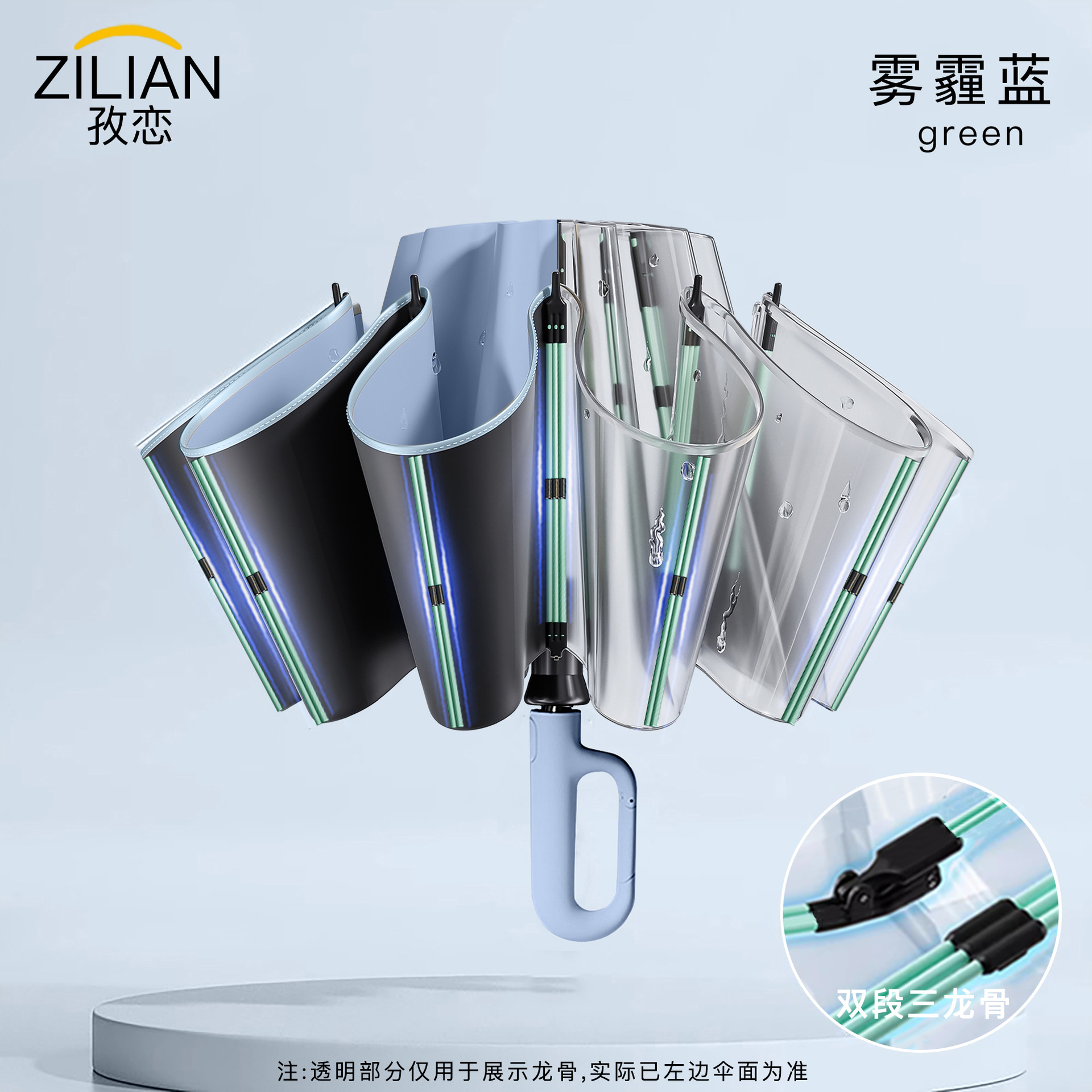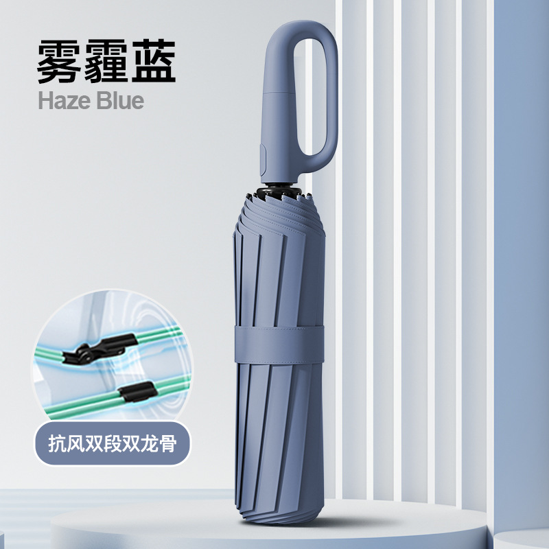 • 헤이즈 블루 [자동] 8-뼈 검은 접착제 우산