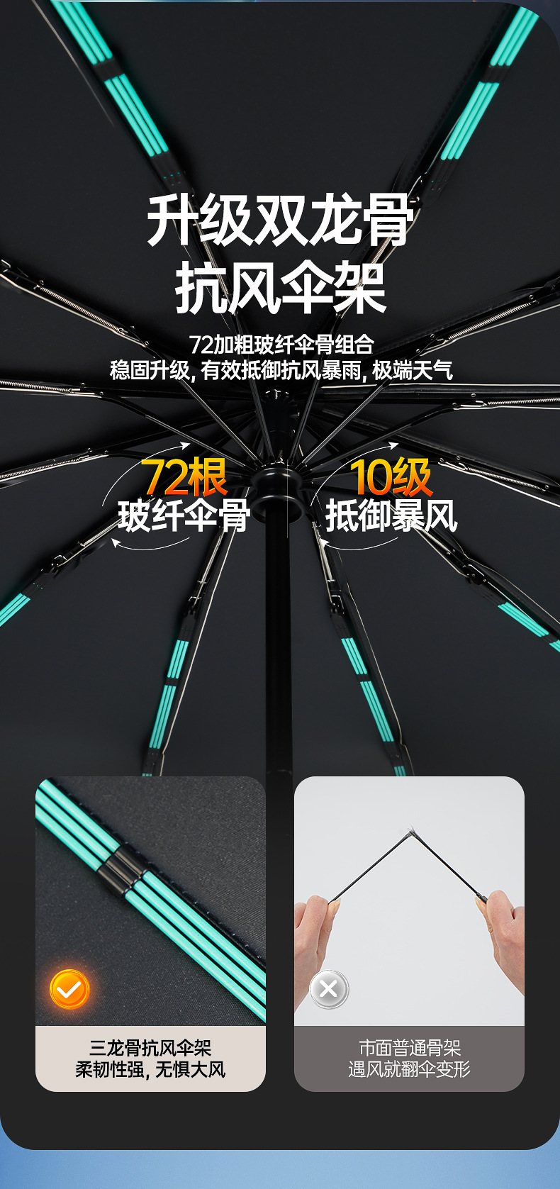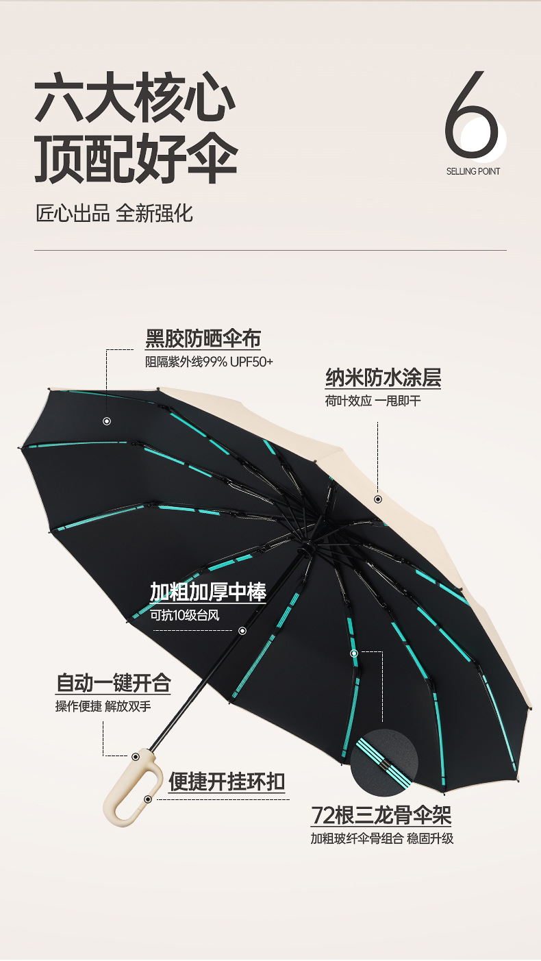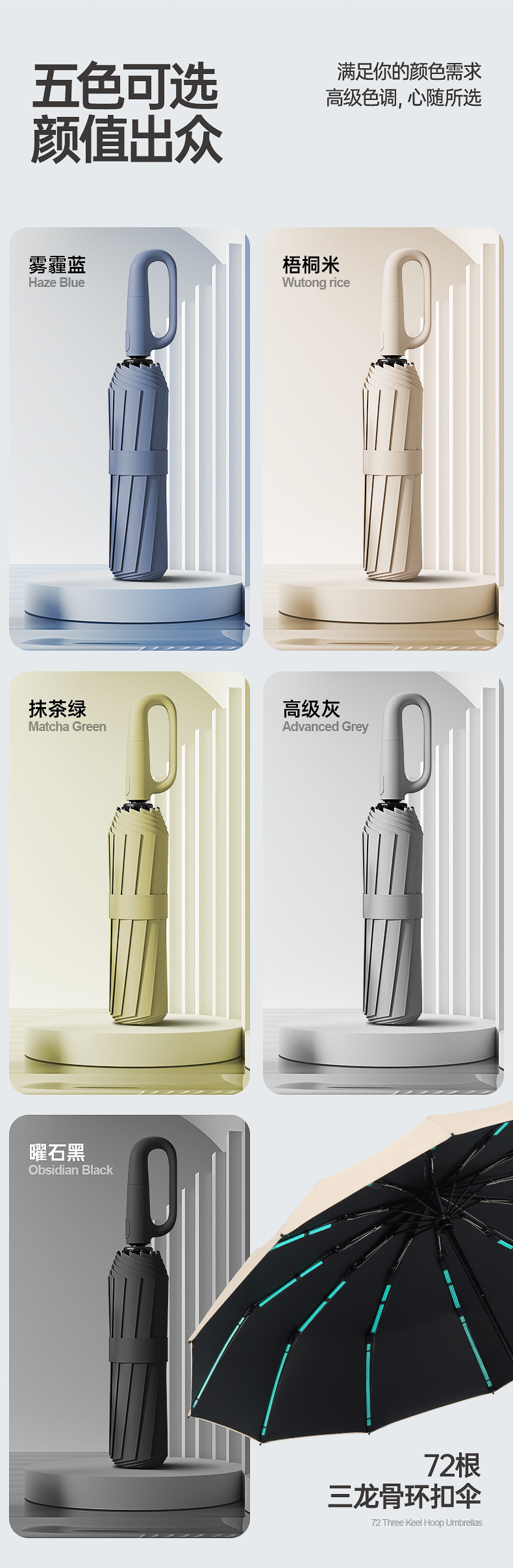 72 자동 버클 우산 휴대용 초대형 두꺼운 강화 된 남성 후크 접이식 비 및 비 이중 여성용