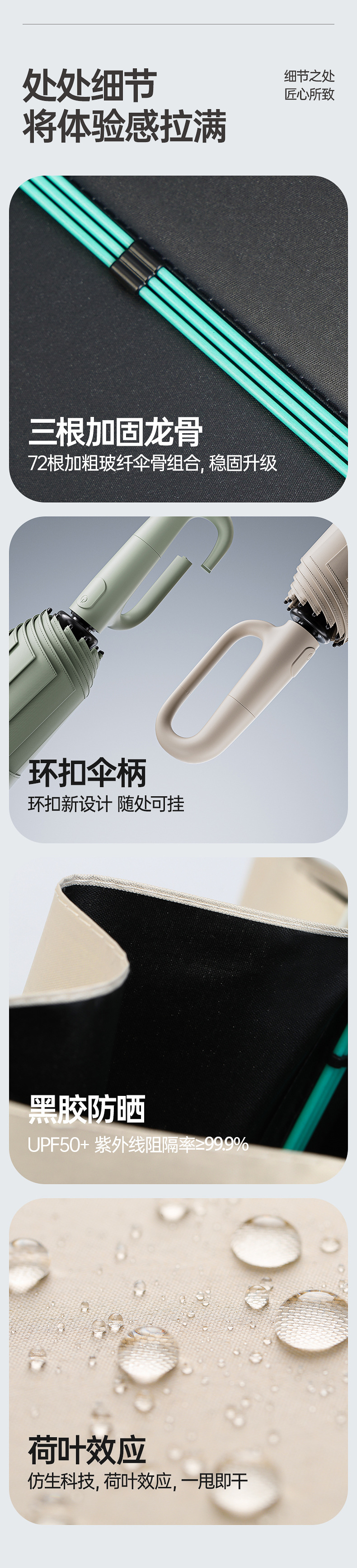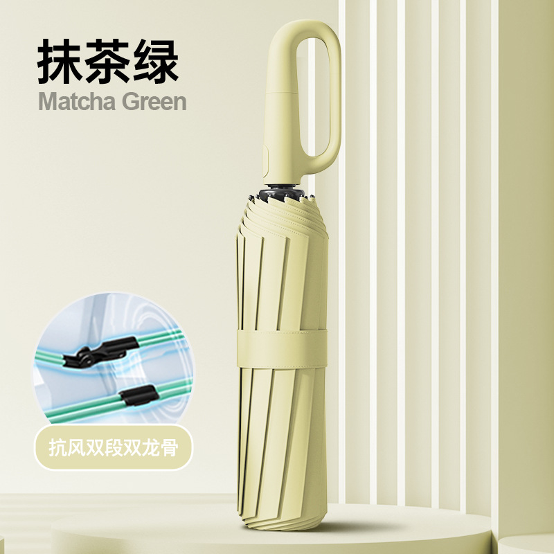 • 말차 녹색 [자동] 8-뼈 검은 접착제 우산