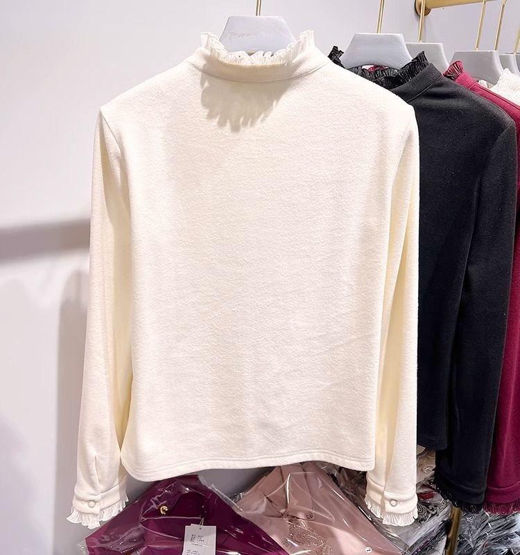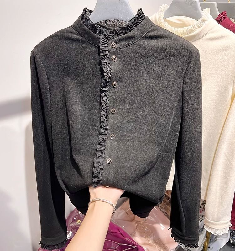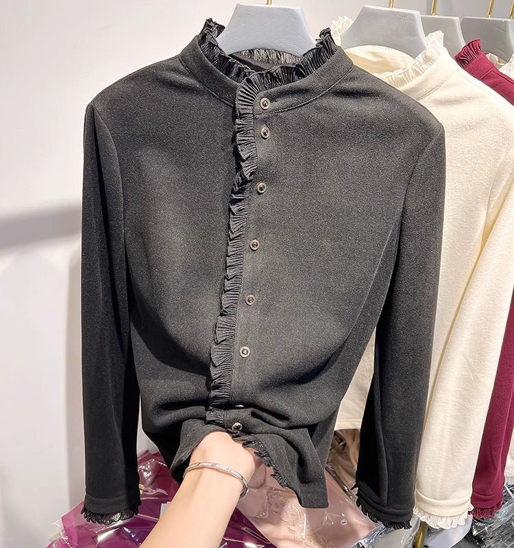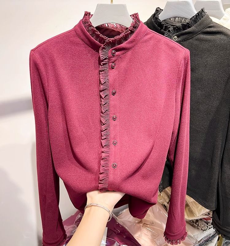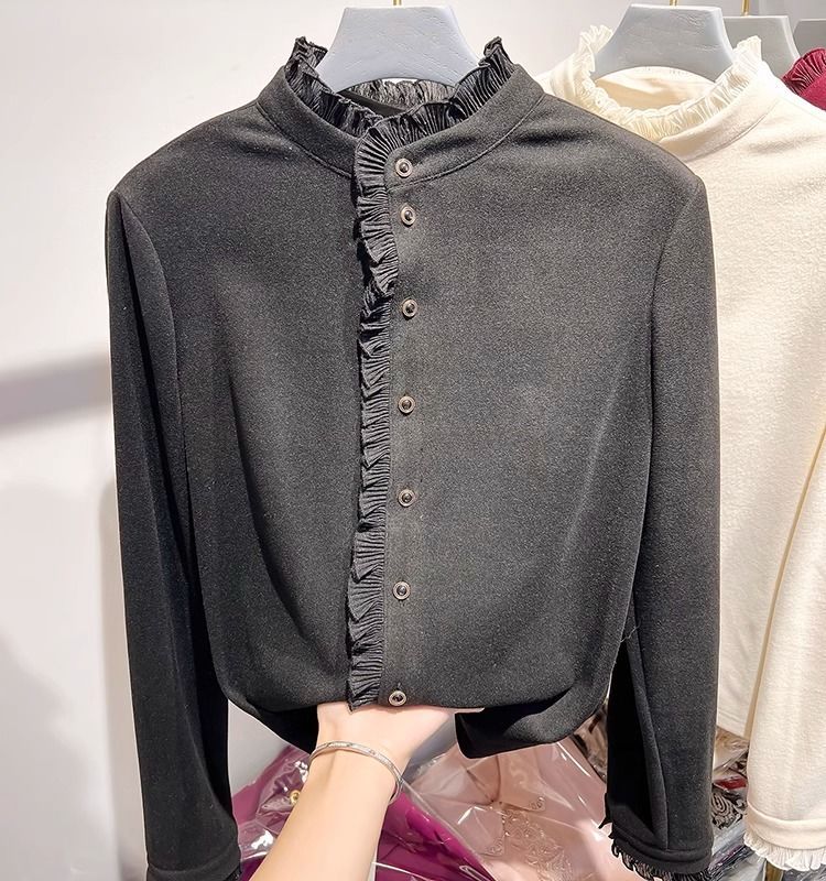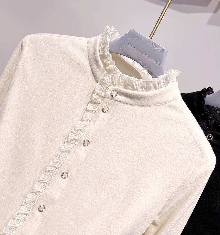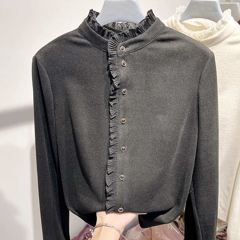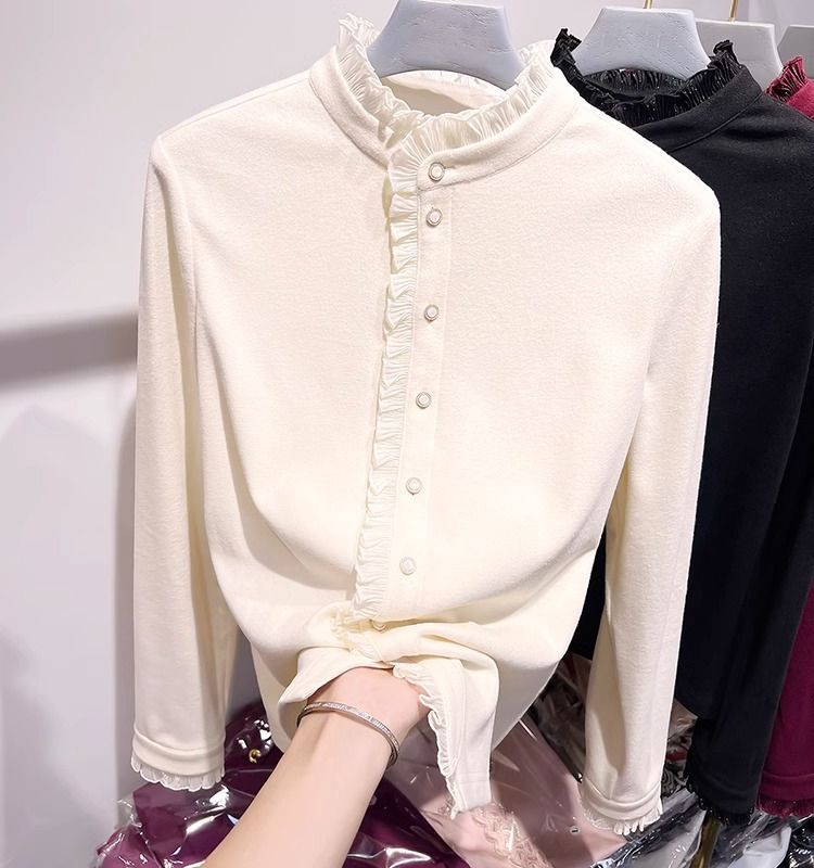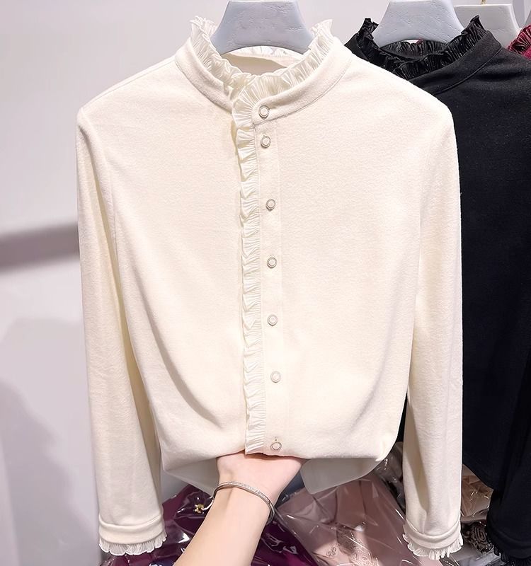 여성용 귀 스탠드 칼라 쉬폰 셔츠 2024 봄 하이 엔드 작은 새 서양 스타일 올 매치 바닥 긴 소매 셔츠스토어 가기
