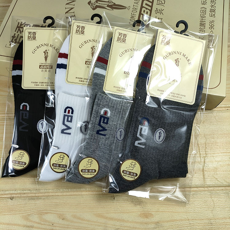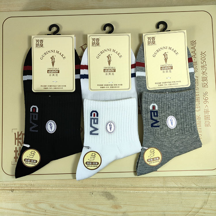 정품 구비니 남성 양말 봄과 여름 스포츠 양말 땀 흡수성 통기성 포시즌 얇은 편지 캐주얼 중반 종아리 길이 양말 51236