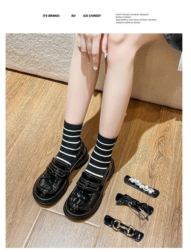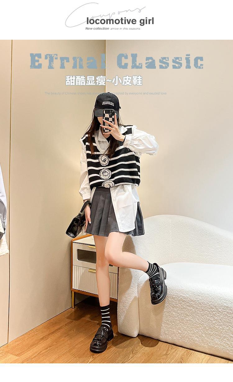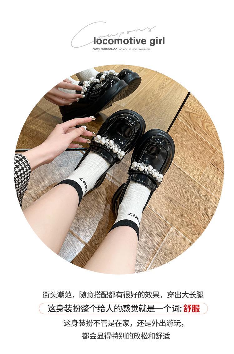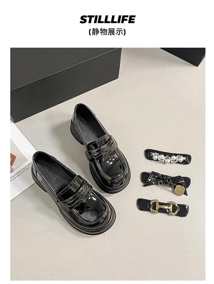 검은 두꺼운 밑창 가죽 신발 둥근 발가락 올 매치 벨크로 영국 스타일 로퍼 메리 제인 높이 증가 특허 가죽 신발 링스토어 가기