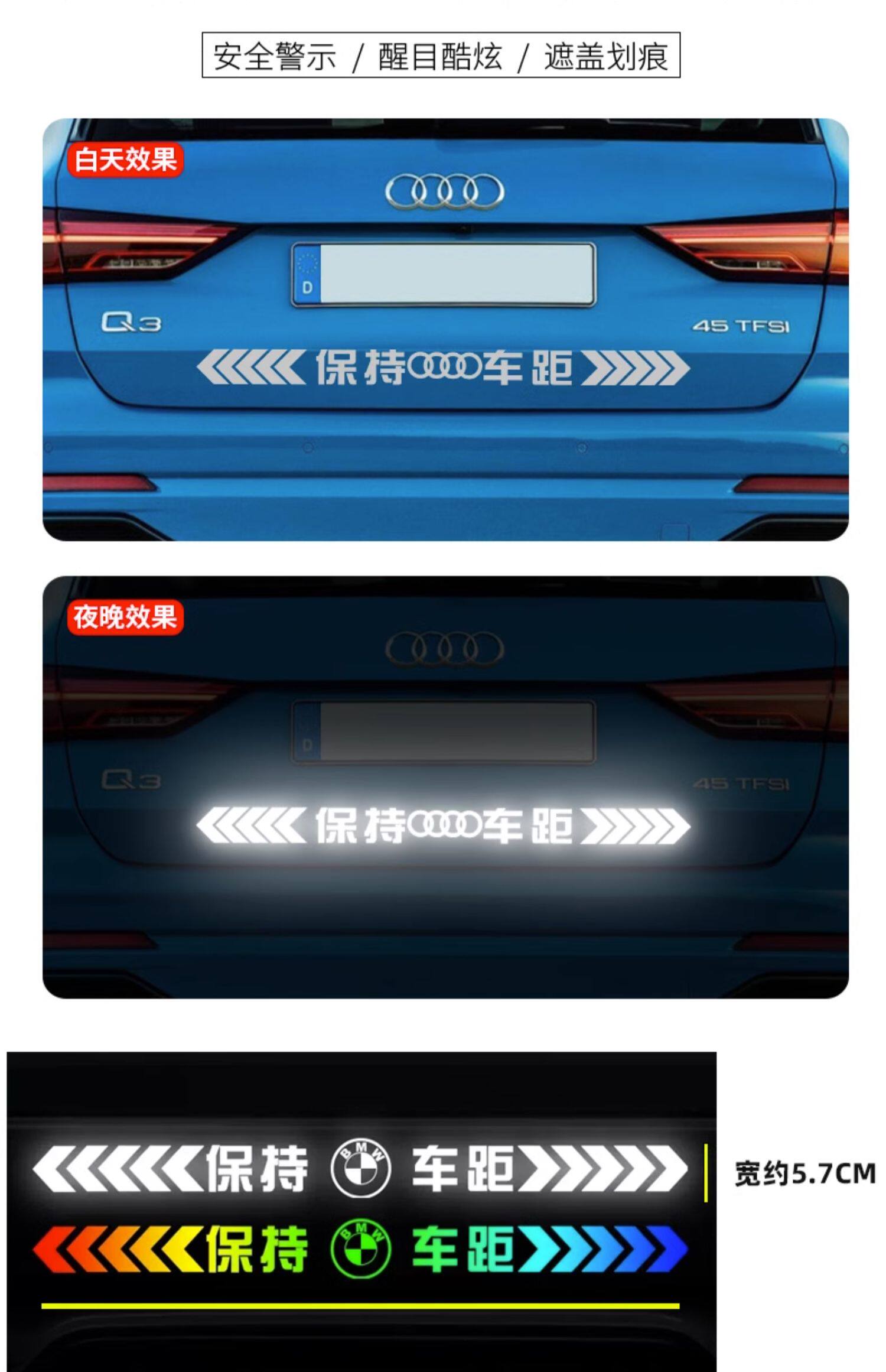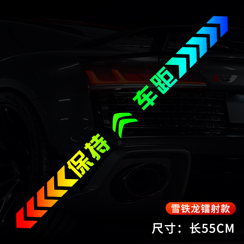 자동차 범퍼 후방 엔드 충돌 방지 후면 유리 반사 스티커 경고 자동차 스티커에서 거리를 유지하는 자동차 다채로운 레이저 자동차 스티커스토어 가기