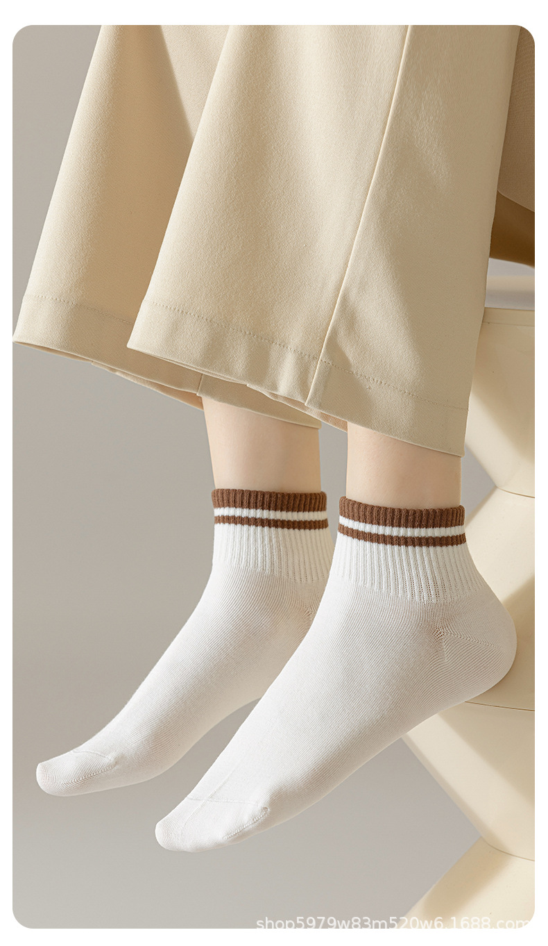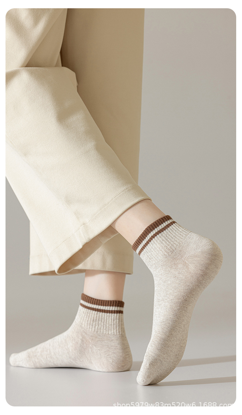 여성면 양말 항균 탈취제 뼈없는 줄무늬 면 양말 봄과 여름 땀 흡수성 통기성 짧은면 양말스토어 가기