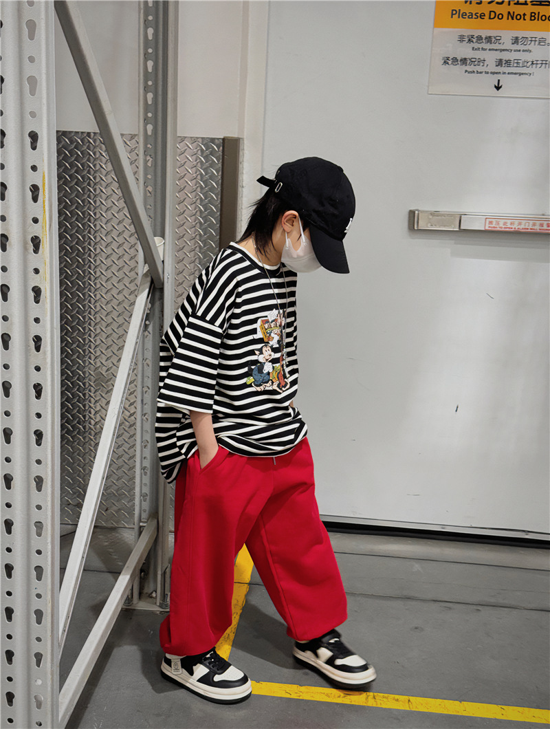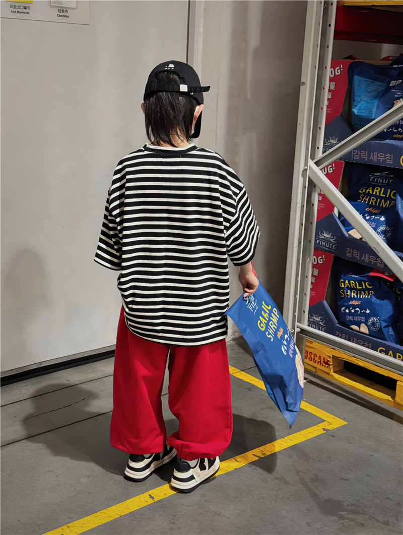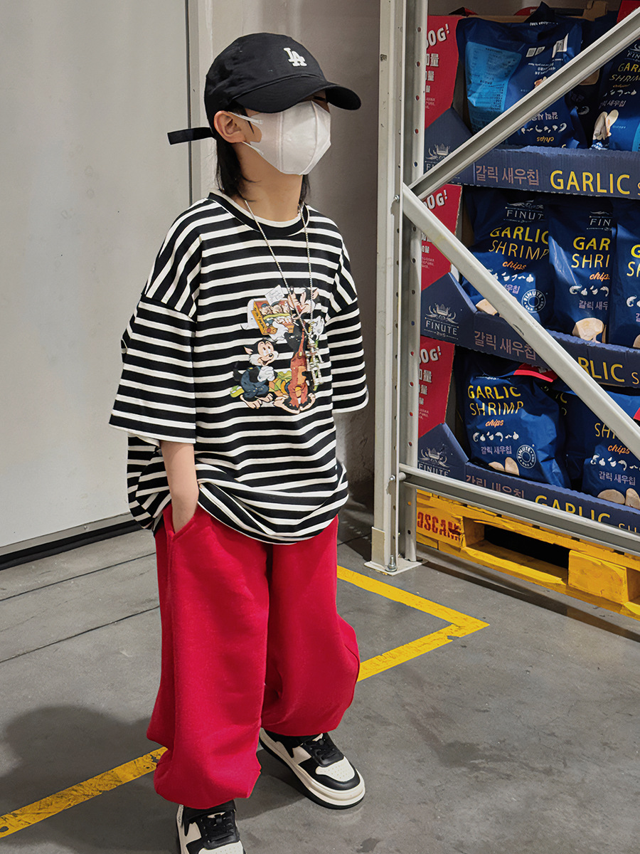 바오 두 아동복 소년 반팔 한국식 여름 어린이 얇은 둥근 목 줄무늬 티셔츠 2024 여름 새스토어 가기