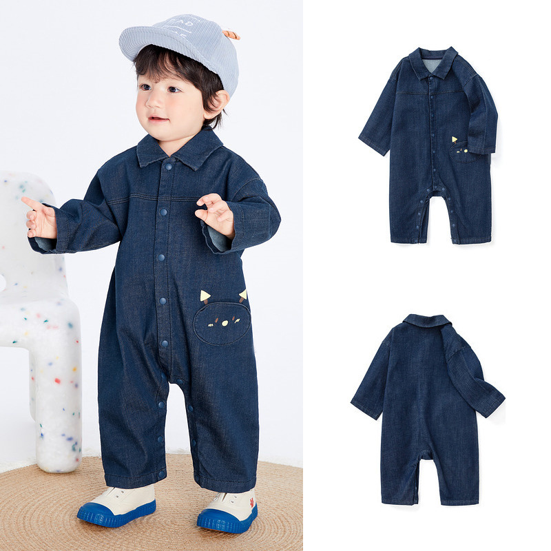아기 점프 수트 아기 나들이 옷 2024 봄 새로운 신생아 아동복 데님 패션스토어 가기