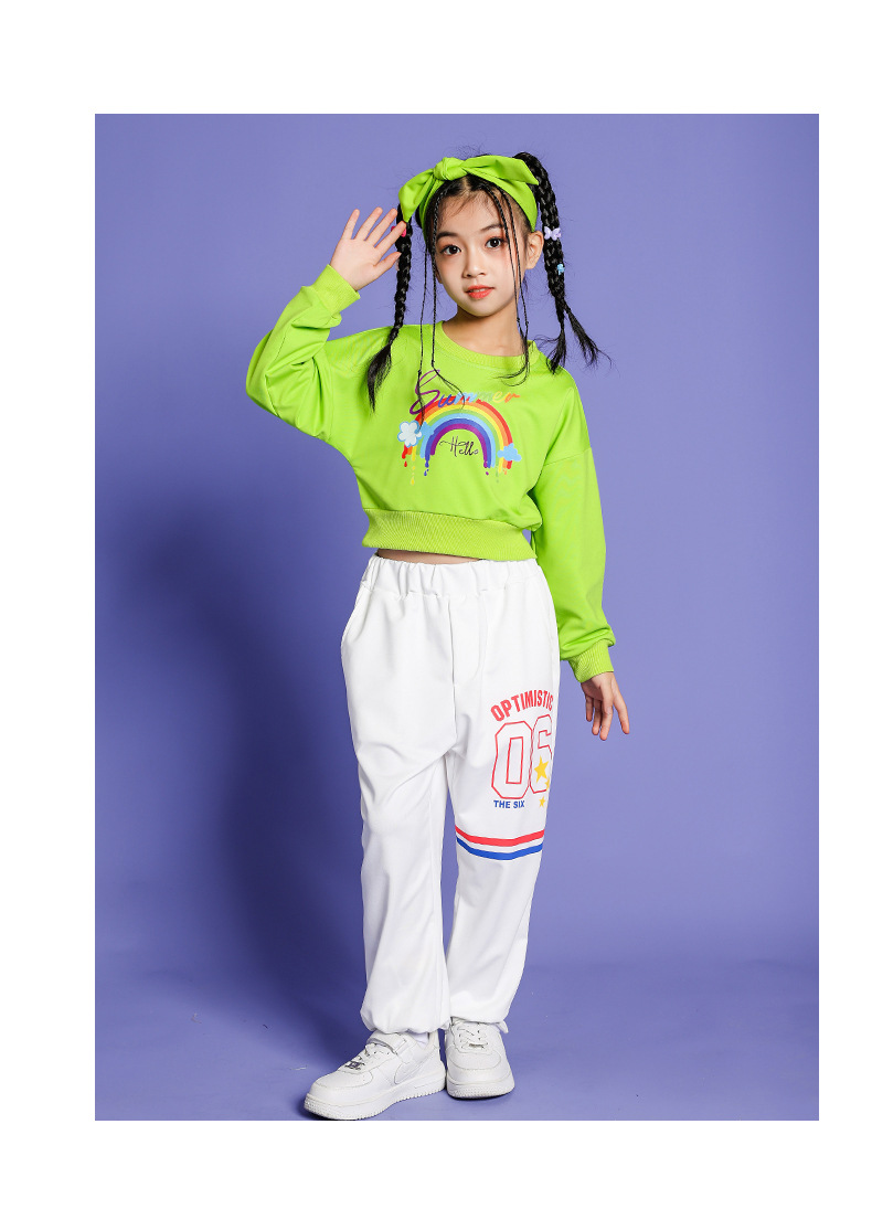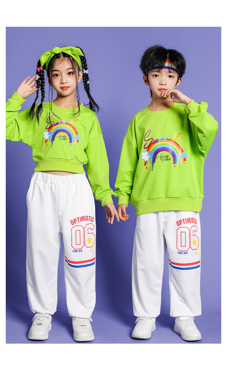 • 여성의 녹색 무지개 세트 [녹색 스웨터 + 흰색 바지]