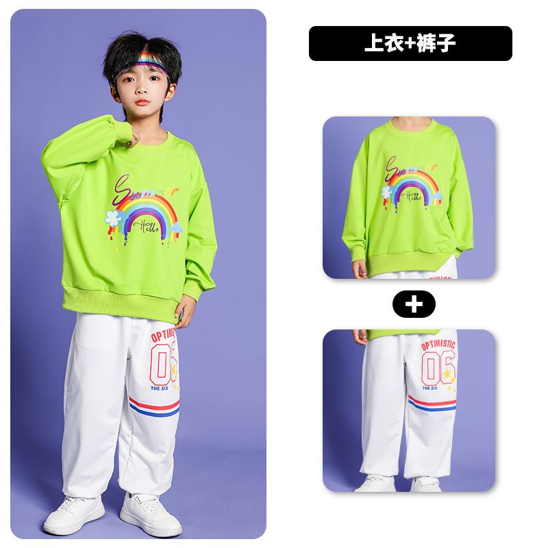 • 남자의 녹색 무지개 세트 [녹색 스웨터 + 흰색 바지]
