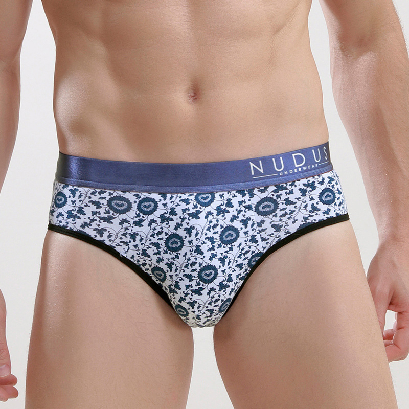 공장 직접 판매 2024 새로운 순면 파란색과 흰색 도자기 삼각형 속옷 중국 스타일의 트렌디 한 남성용 짧은 속옷 머리 원피스 배달스토어 가기